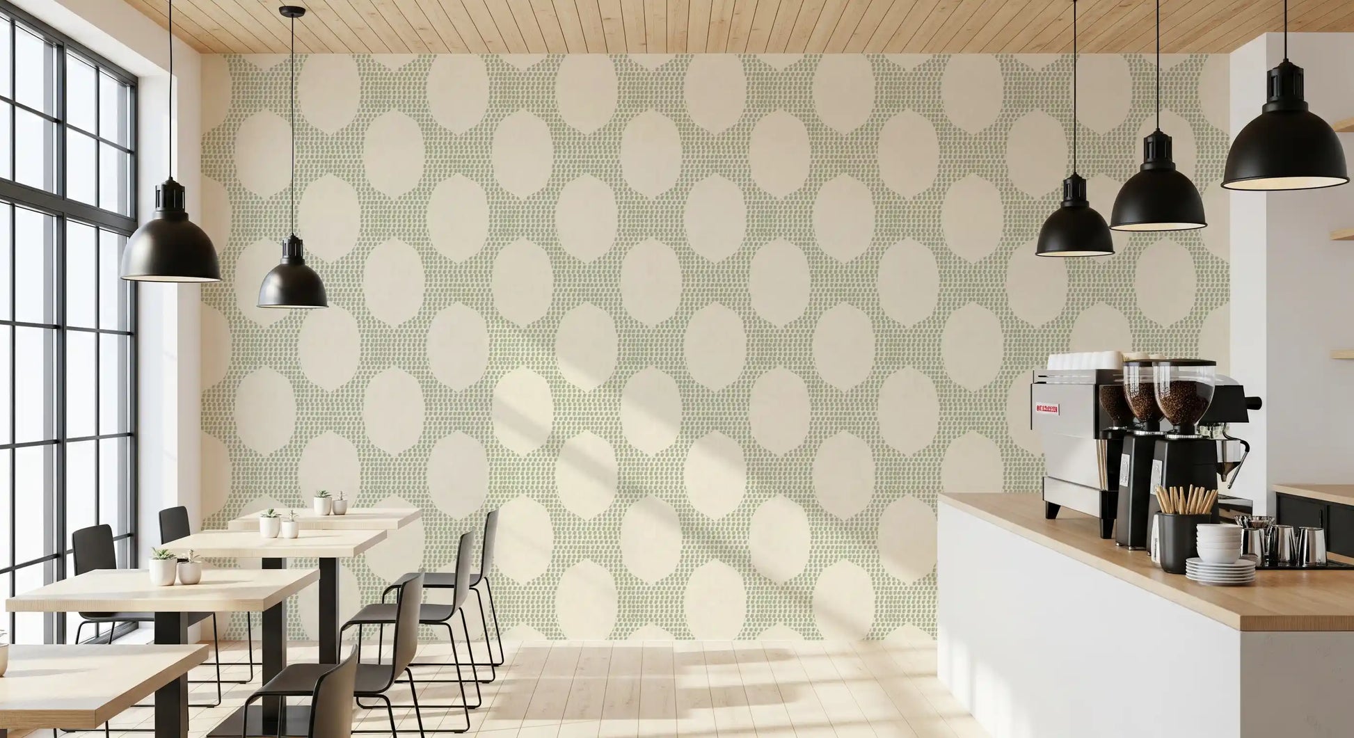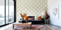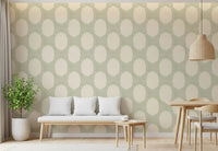 Immerse your space in the tranquil beauty of our Beachy Boho Coastal Green Mosaic wall covering. This exquisite design captures the essence of serene coastal living with a relaxed, bohemian touch. Delicate, hand-painted sage green dots form an intricate mosaic pattern, reminiscent of sea glass scattered across sandy shores. The subtle, linen-like texture in a soft, creamy beige background adds depth and an artisanal quality, evoking a sense of calm and natural elegance. Organic arching shapes emerge, defining the pattern and creating a harmonious flow across your walls. Perfect for transforming any room into a peaceful sanctuary, this design brings an understated sophistication and a breath of fresh air. Embrace the gentle rhythm of the coast and the free-spirited charm of bohemian artistry with this unique and calming aesthetic, designed to inspire tranquillity and natural beauty.