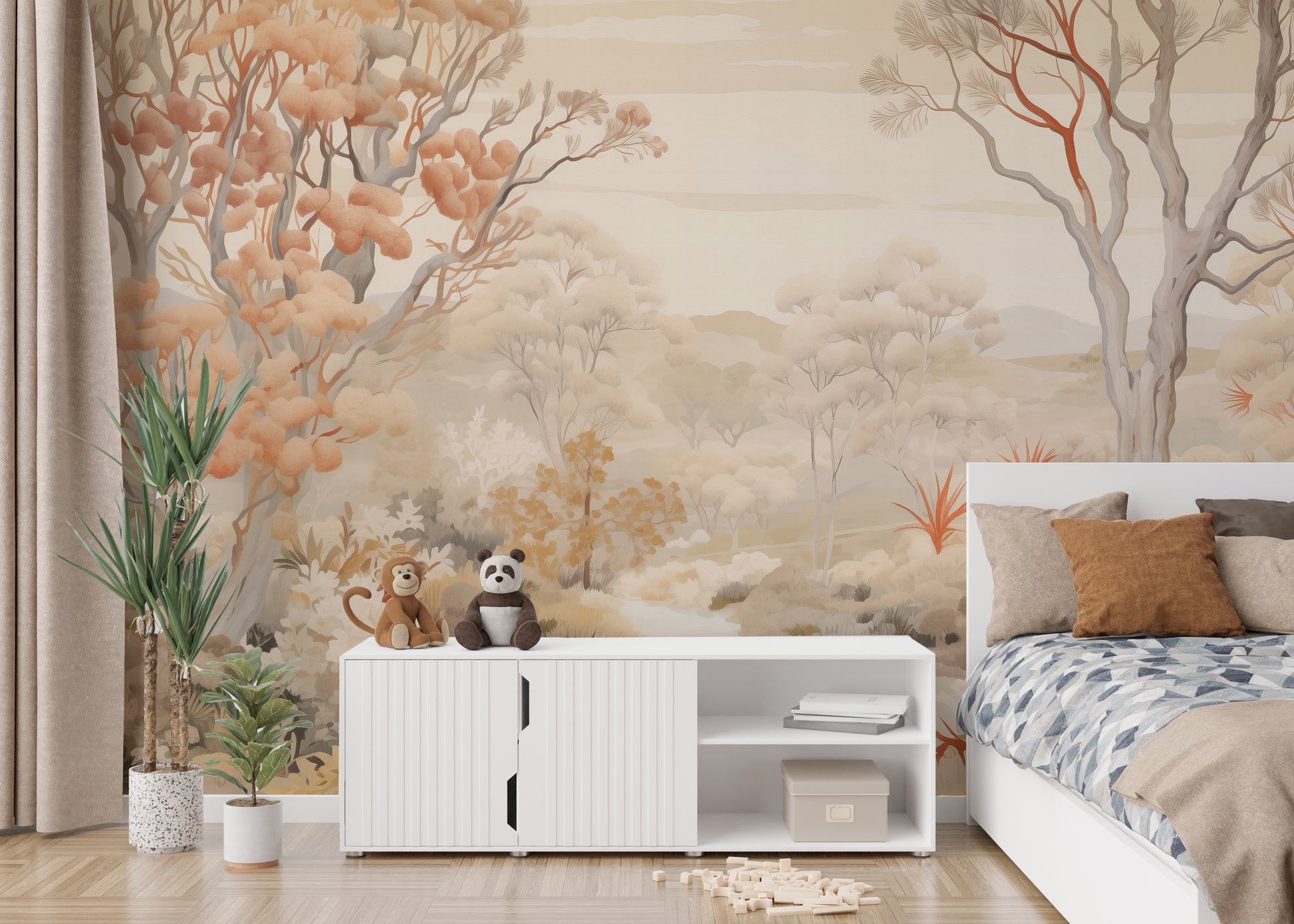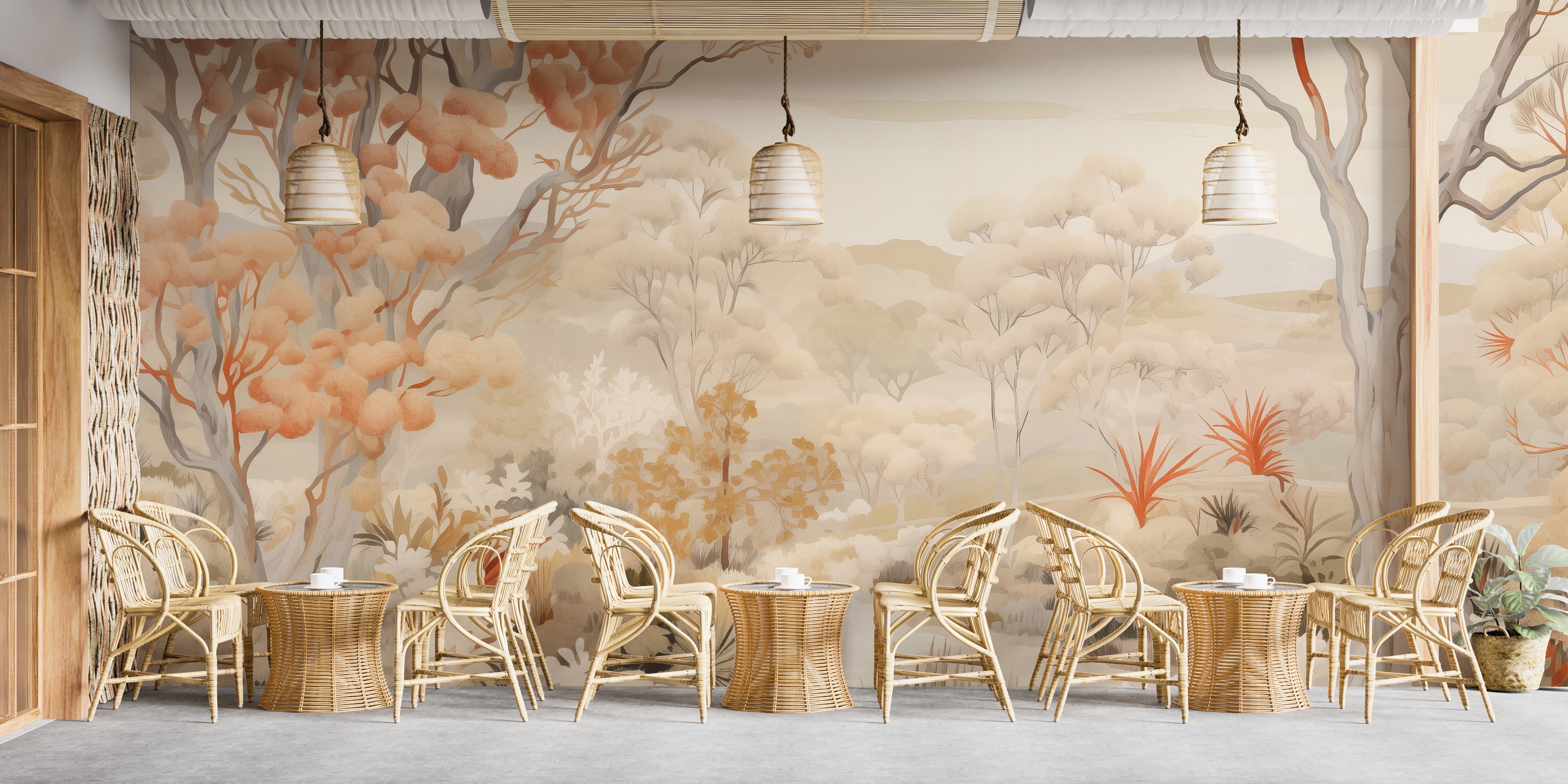 Bring nature indoors with a beautiful autumn forest mural wallpaper.