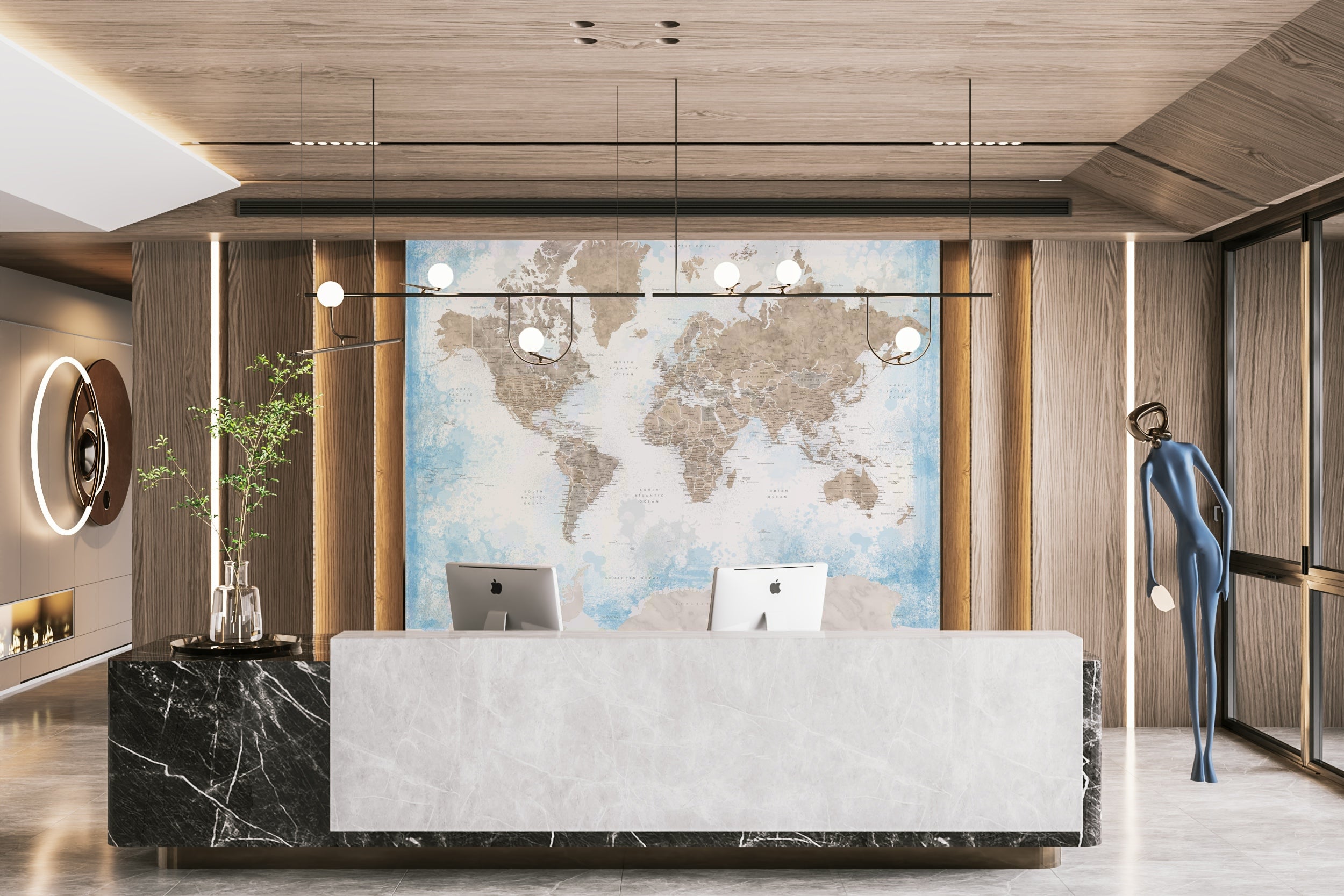 Add timeless charm to your space with the Beige and Sky Blue Watercolor World Map Wallpaper. Featuring soft beige landmasses over a serene sky-blue background, this map mural blends earthy warmth with airy freshness. The watercolor texture gives it an artistic, vintage-inspired feel, while clearly labeled countries and cities provide an educational touch. Ideal for living rooms, studies, nurseries, or offices, it complements neutral, rustic, coastal, and minimalist décor styles. Available in both peel-and-stick and traditional wallpaper options, it’s easy to install and eco-friendly. Transform your walls into a calming global canvas with this beautifully balanced world map design.