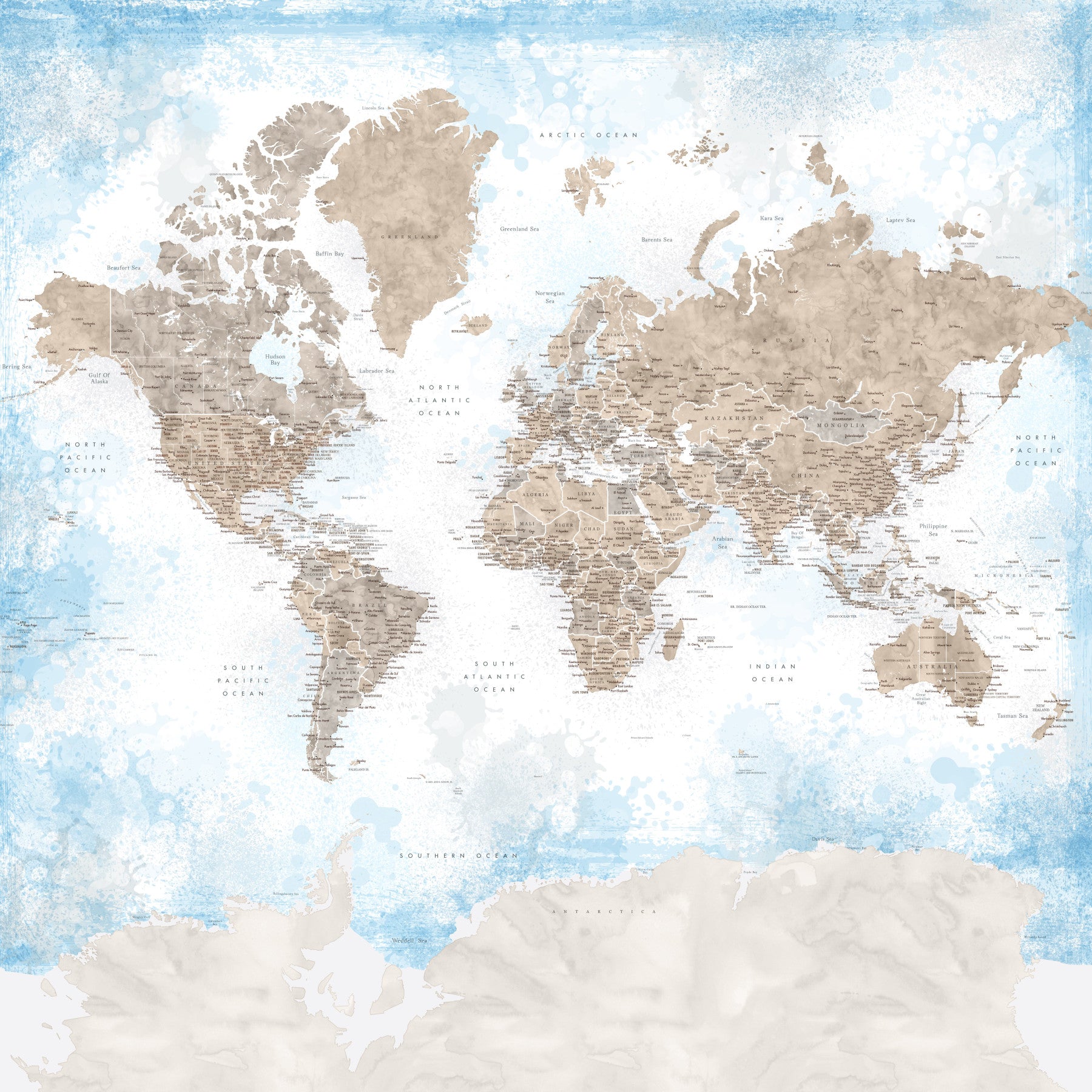 Beige and Sky Blue Watercolor World Map Wallpaper
