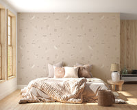 Gentle beige forest wallpaper for a nature-inspired nursery.