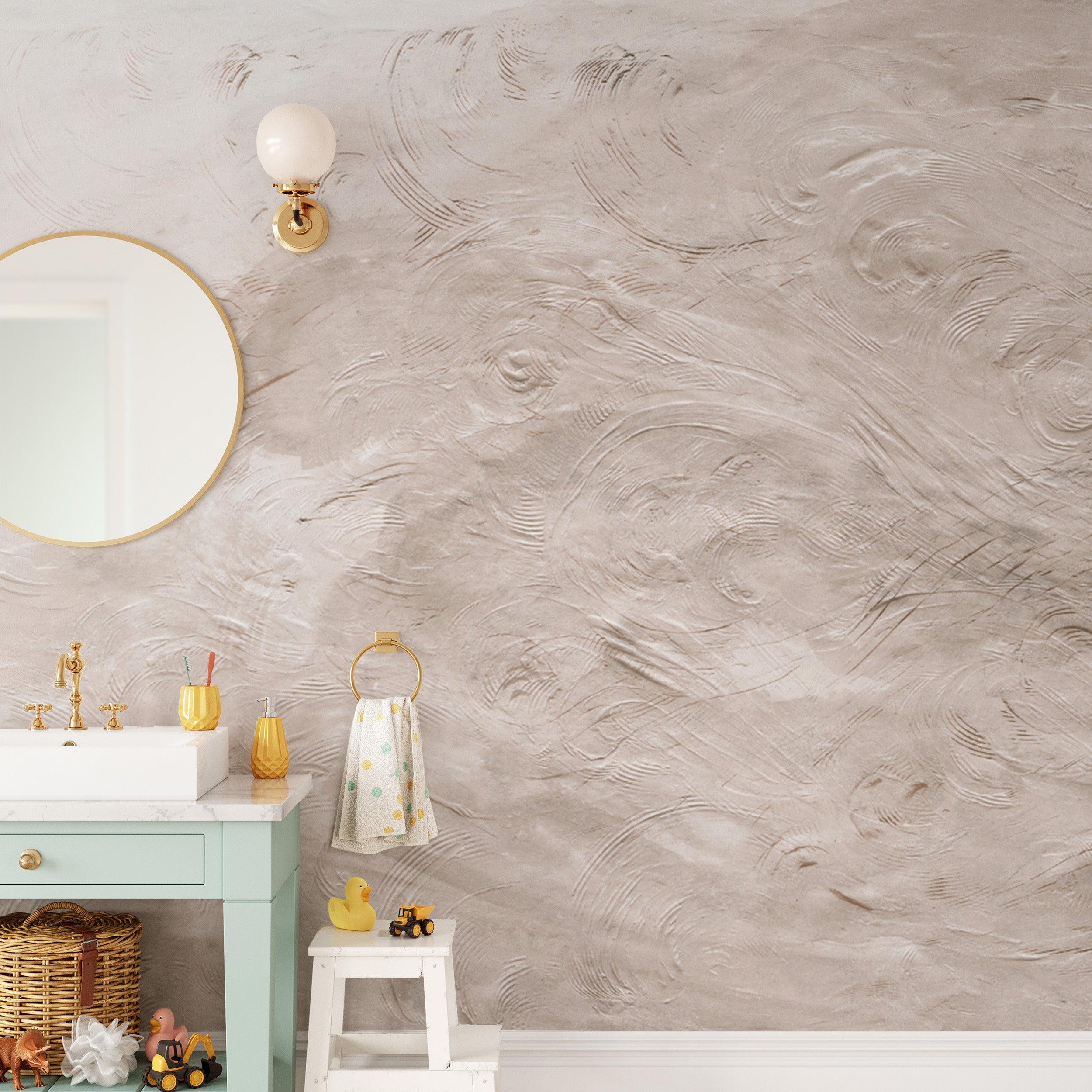 Neutral textured wallpaper with swirl patterns