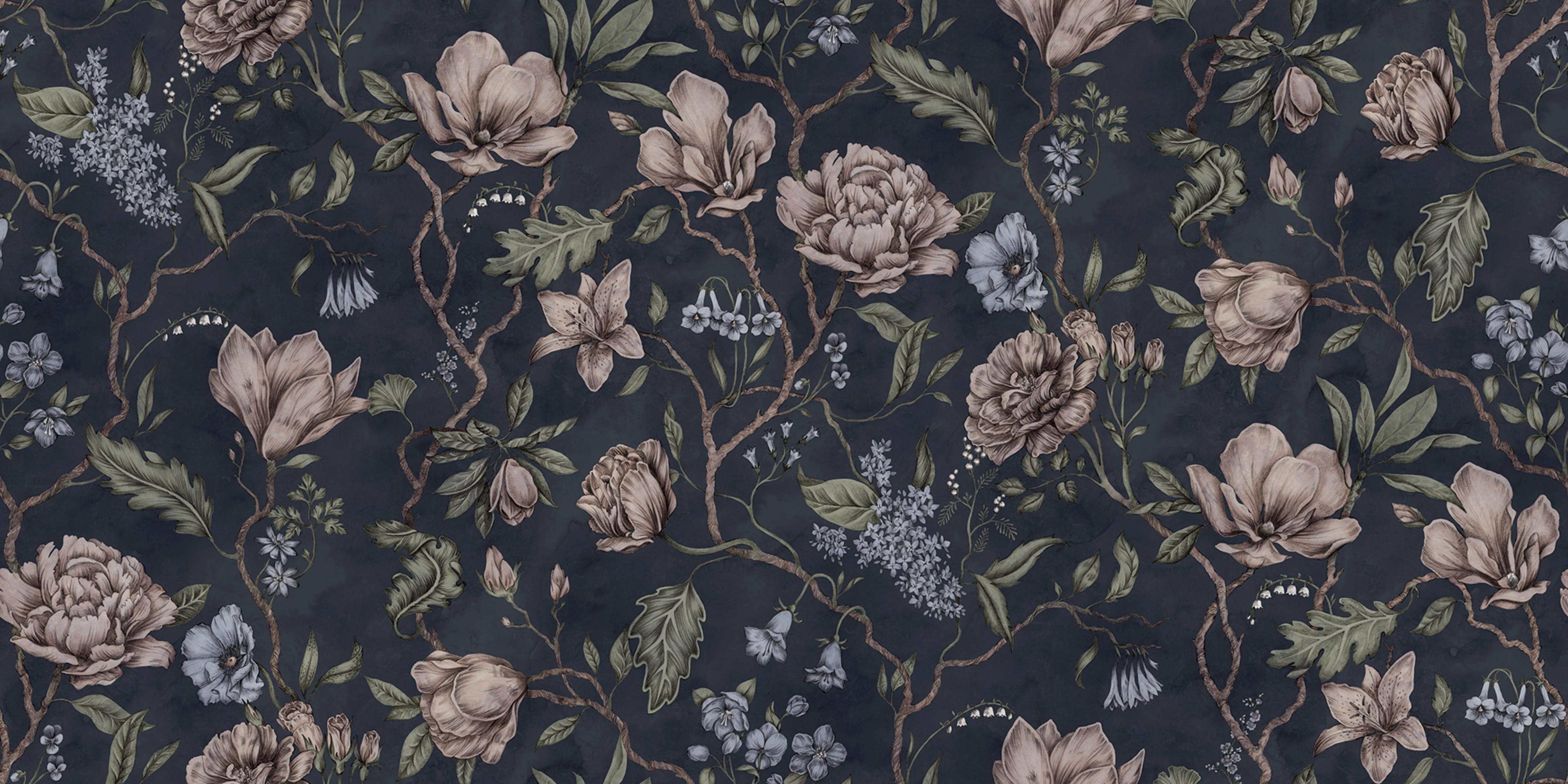 Belinda Dark Blue Wallpaper, garden-inspired style