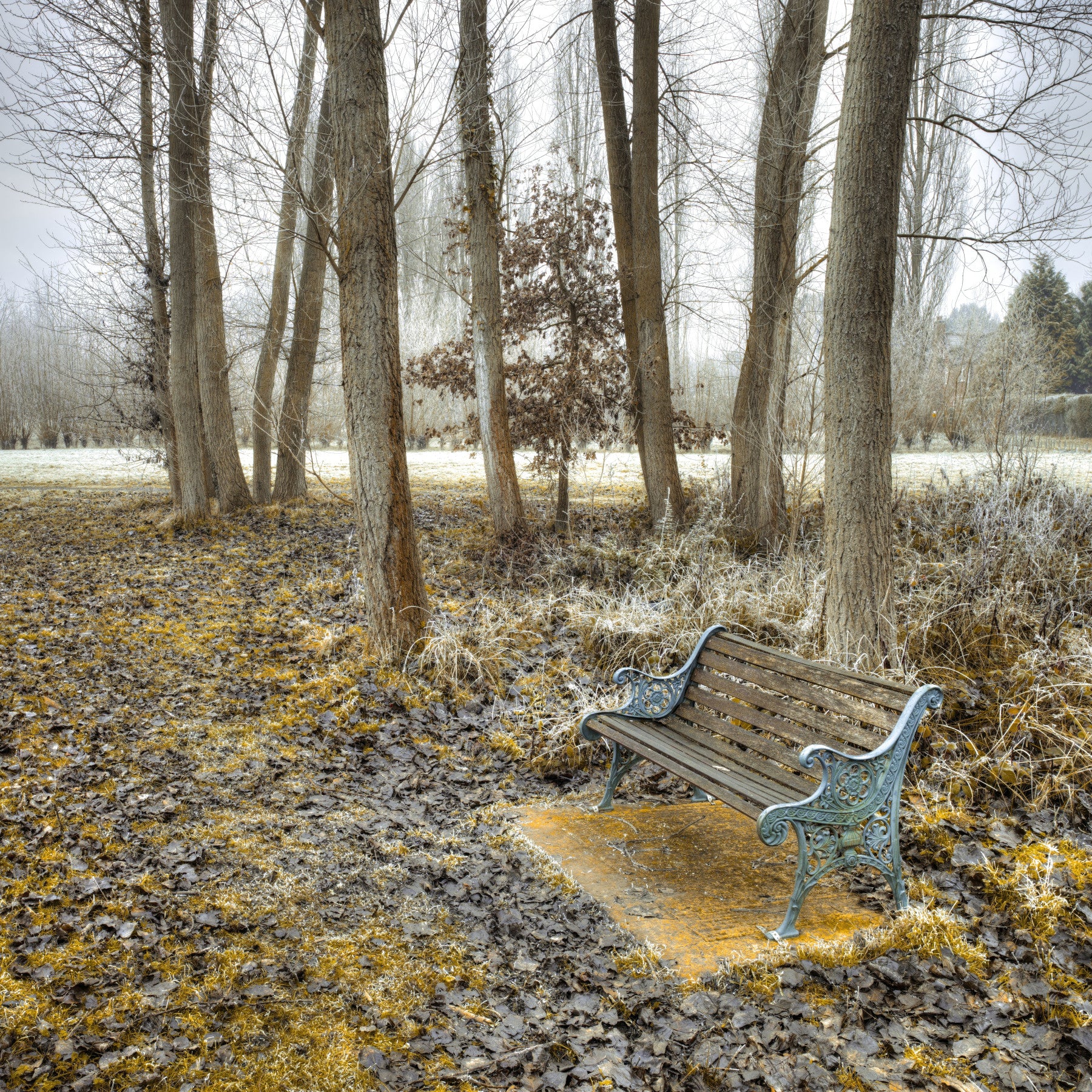 Desolate Bench at Park photo wallpaper, golden ground patch.