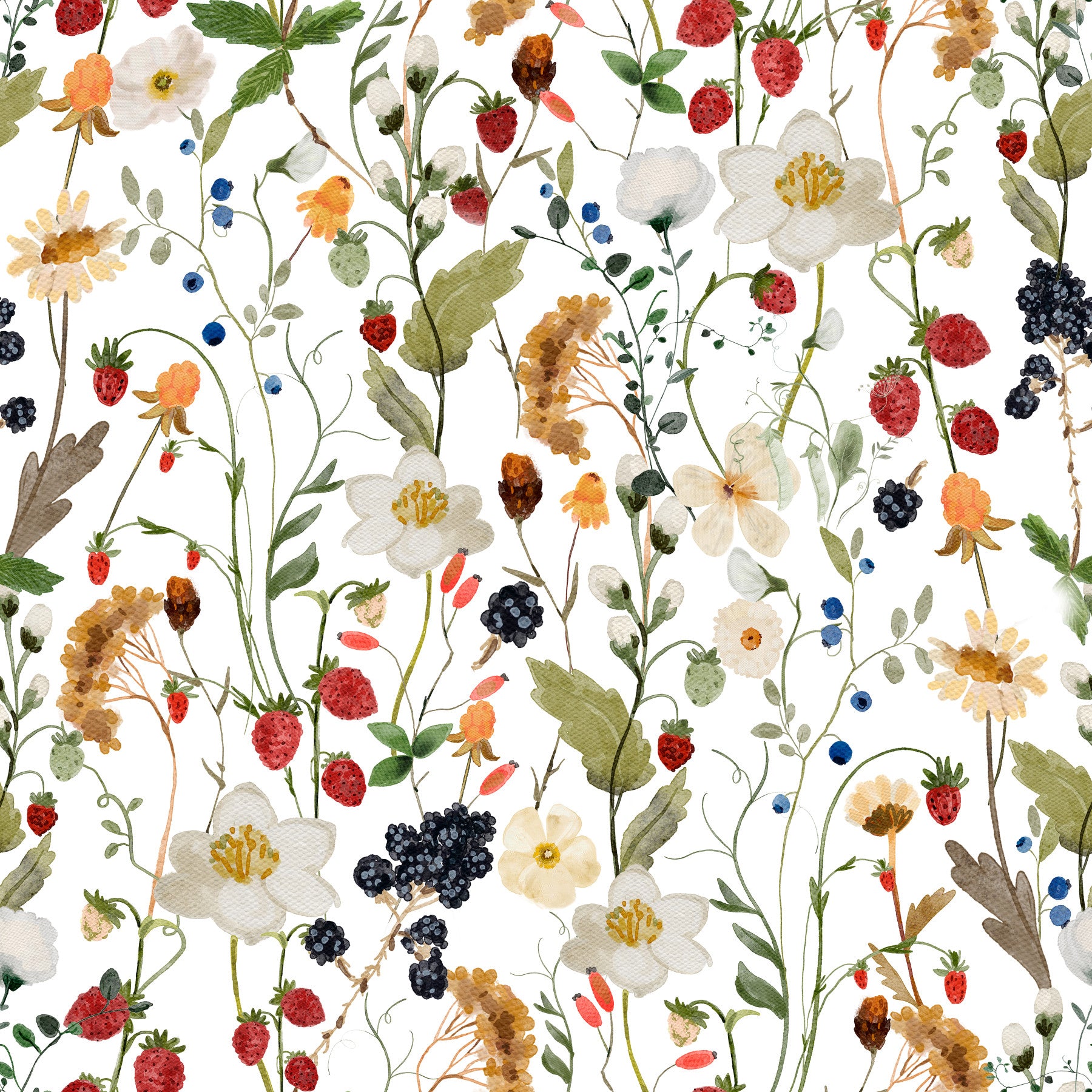 Berry Bloom Meadow wallpaper mural wildflower pattern