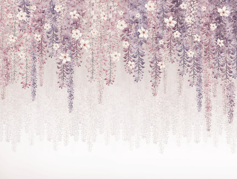 Bicycle in a Lavender Field wall mural, relaxing purple flower landscape design.
