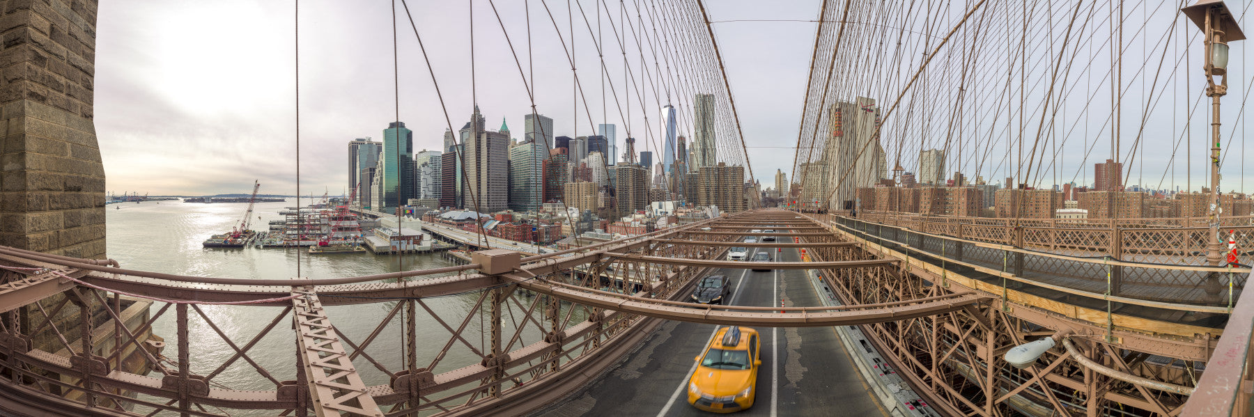 Brooklyn bridge, New York. Bring the energy of New York City home with this skyline view. The dynamic design captures the towering skyscrapers and bustling city life from the vantage point of a city bridge. This wallpaper for walls delivers a stylish, metropolitan statement to any space. Its blend of neutrals and bold architectural lines works wonders in living rooms, offices, or even urban-themed bedrooms.