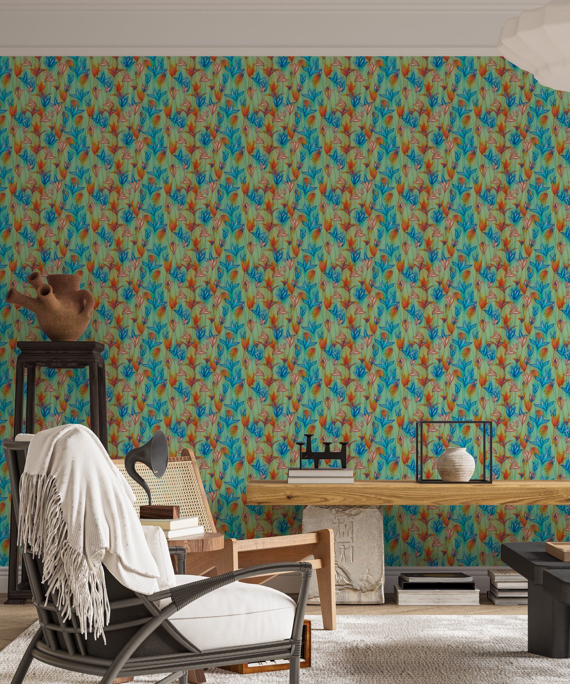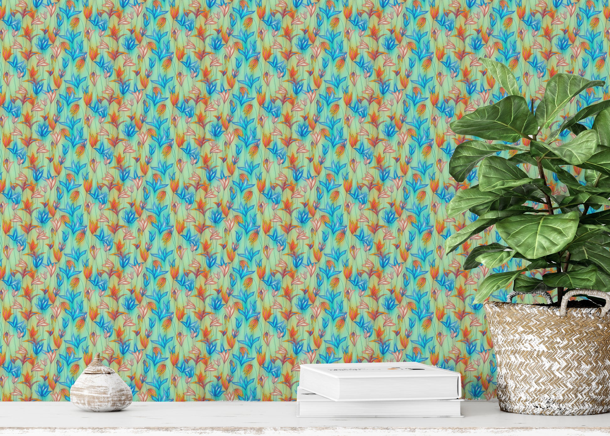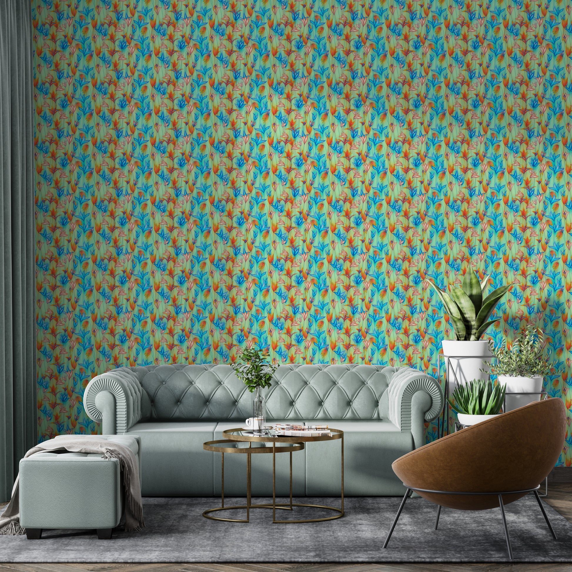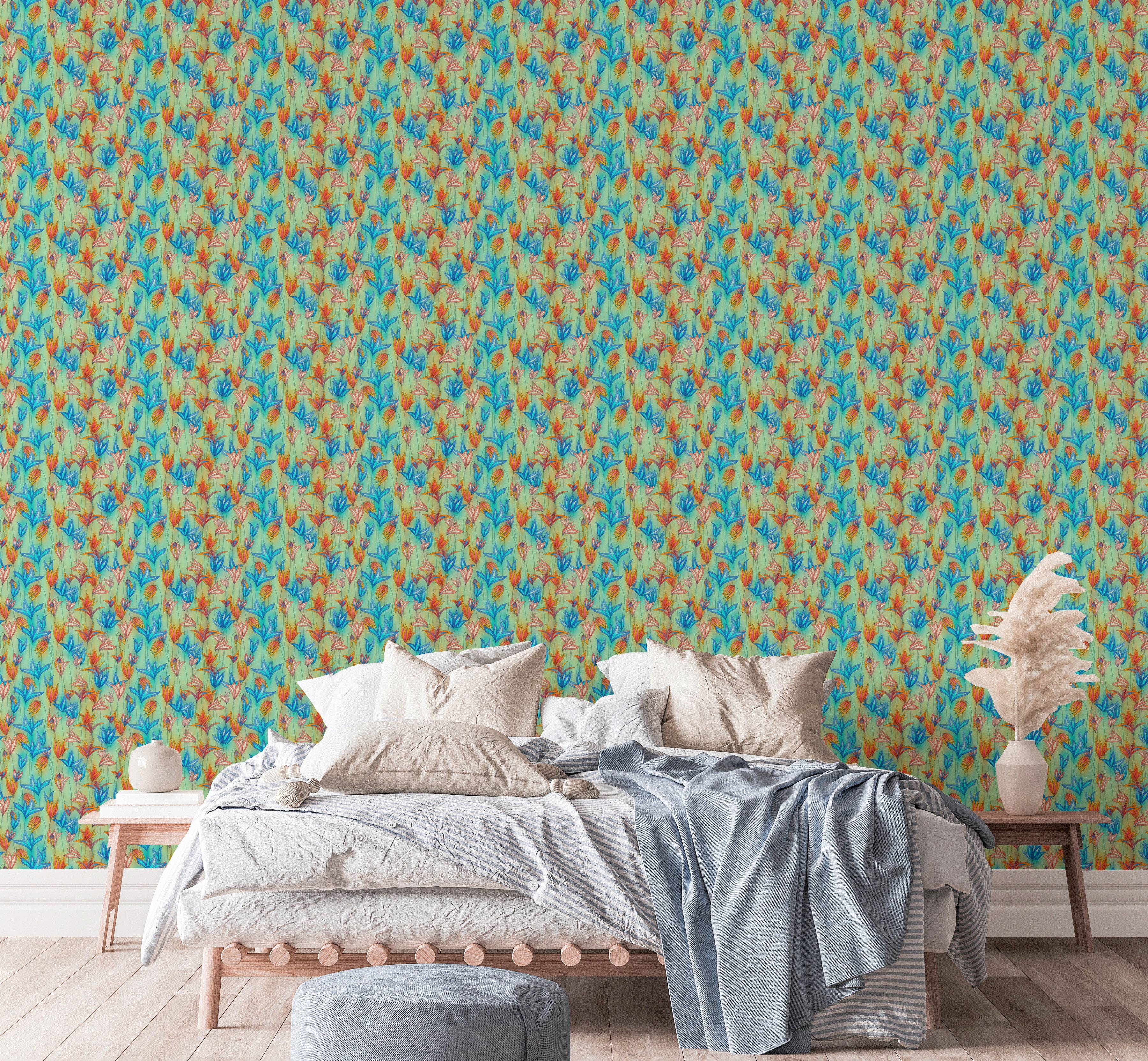 Bring nature’s vibrance indoors with our Big Bold Wildflowers Green Wallpaper. This eye-catching design features vivid blue, orange, and coral wildflowers dancing across a soft green backdrop, creating a lively yet soothing botanical aesthetic. Perfect for accent walls, bedrooms, or creative studios, this wallpaper breathes life and energy into any space. The intricate floral patterns evoke a wild meadow in full bloom, making it ideal for nature lovers and modern interiors alike. Easy to apply and remove, this peel and stick wallpaper adds instant charm without commitment. Elevate your décor with bold floral wallpaper that turns walls into living art.