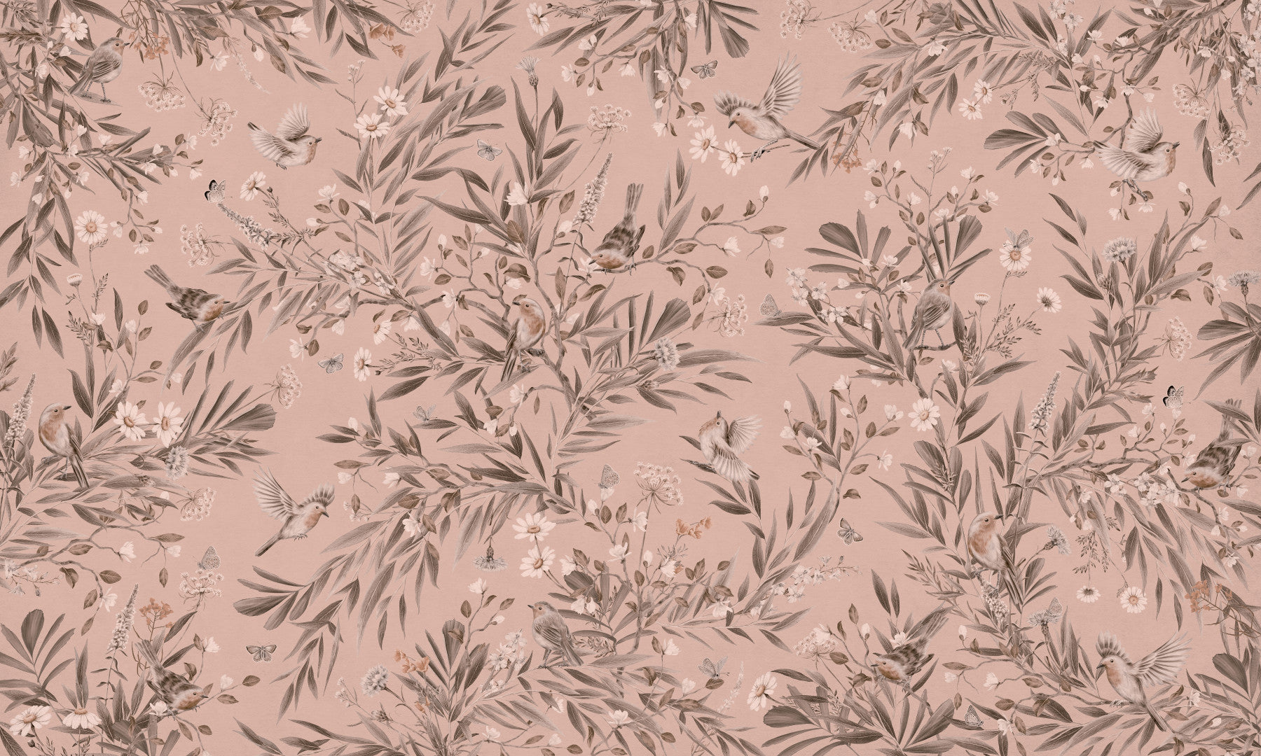 Invite nature inside with this enchanting wallpaper for walls. Small birds flit among delicate branches and flowers, rendered in a soft, earthy palette. The design brings a calm and sophisticated atmosphere to bedrooms, living rooms, or hallways. Its understated elegance easily complements a variety of interior styles, from classic to modern farmhouse, adding a touch of organic charm.