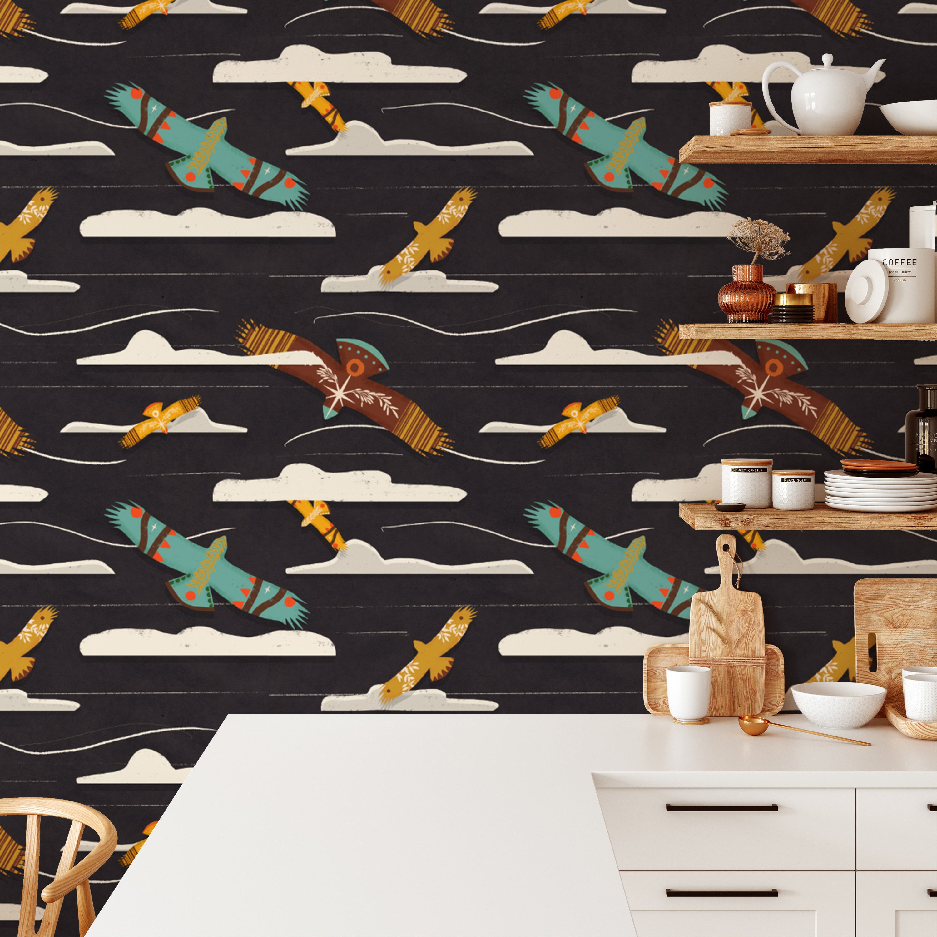 Create a warm and inviting atmosphere in your home with the Hallway: Birds of Prey Eagle Flying Charcoal Wallpaper. This beautiful wallpaper wall mural features design and is made from eco-friendly materials. With Birds of Prey Eagle Flying Charcoal Wallpaper for walls, you can enjoy aesthetic appeal in any room of your home.