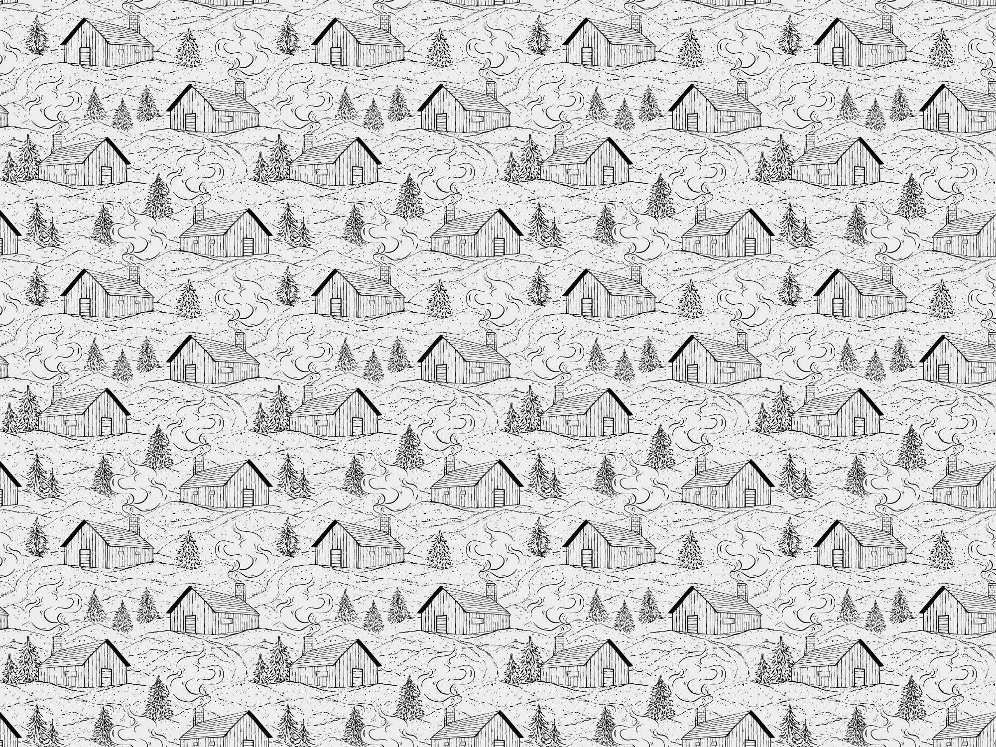 Minimalist smokey cabin wallpaper in black and white for elegant styling.