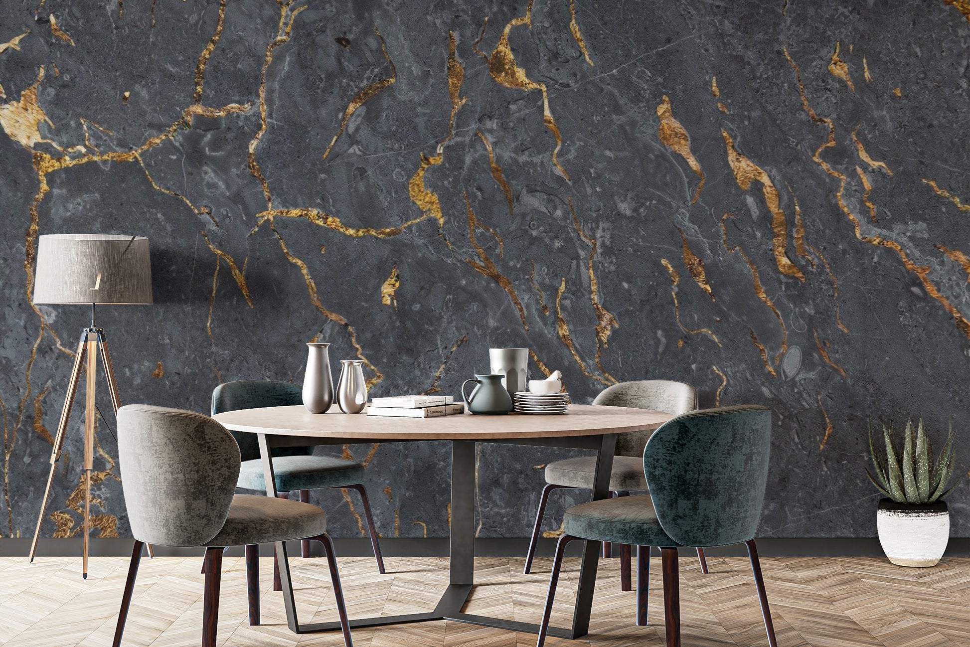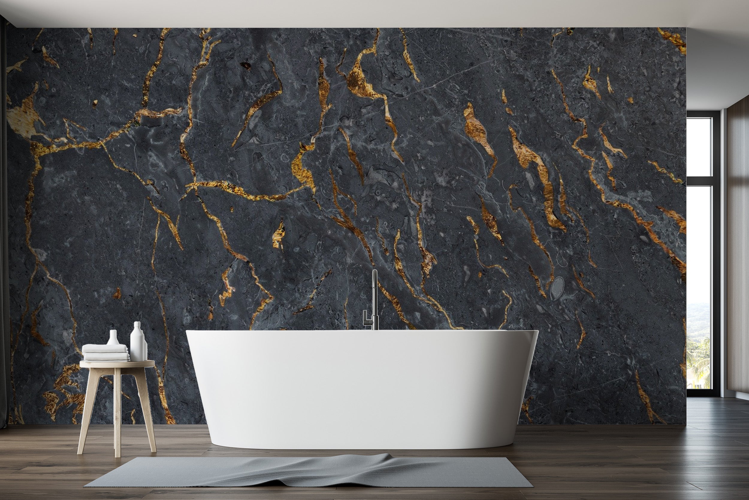 Discover the epitome of elegance with our black marble wallpaper, blending impeccable style with enduring durability. Ideal for both modern and classic interiors, this wallpaper features a sophisticated black and gold marble pattern that adds a luxurious touch to any room. Our peel-and-stick design simplifies installation, allowing you to transform spaces effortlessly without permanent alterations.