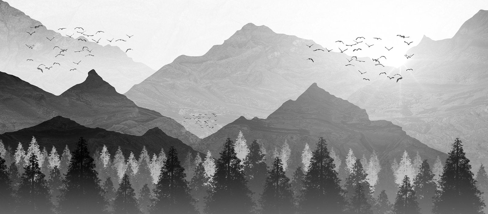 Black and White Mountain Ranges Wallpaper Mural - Giffywalls