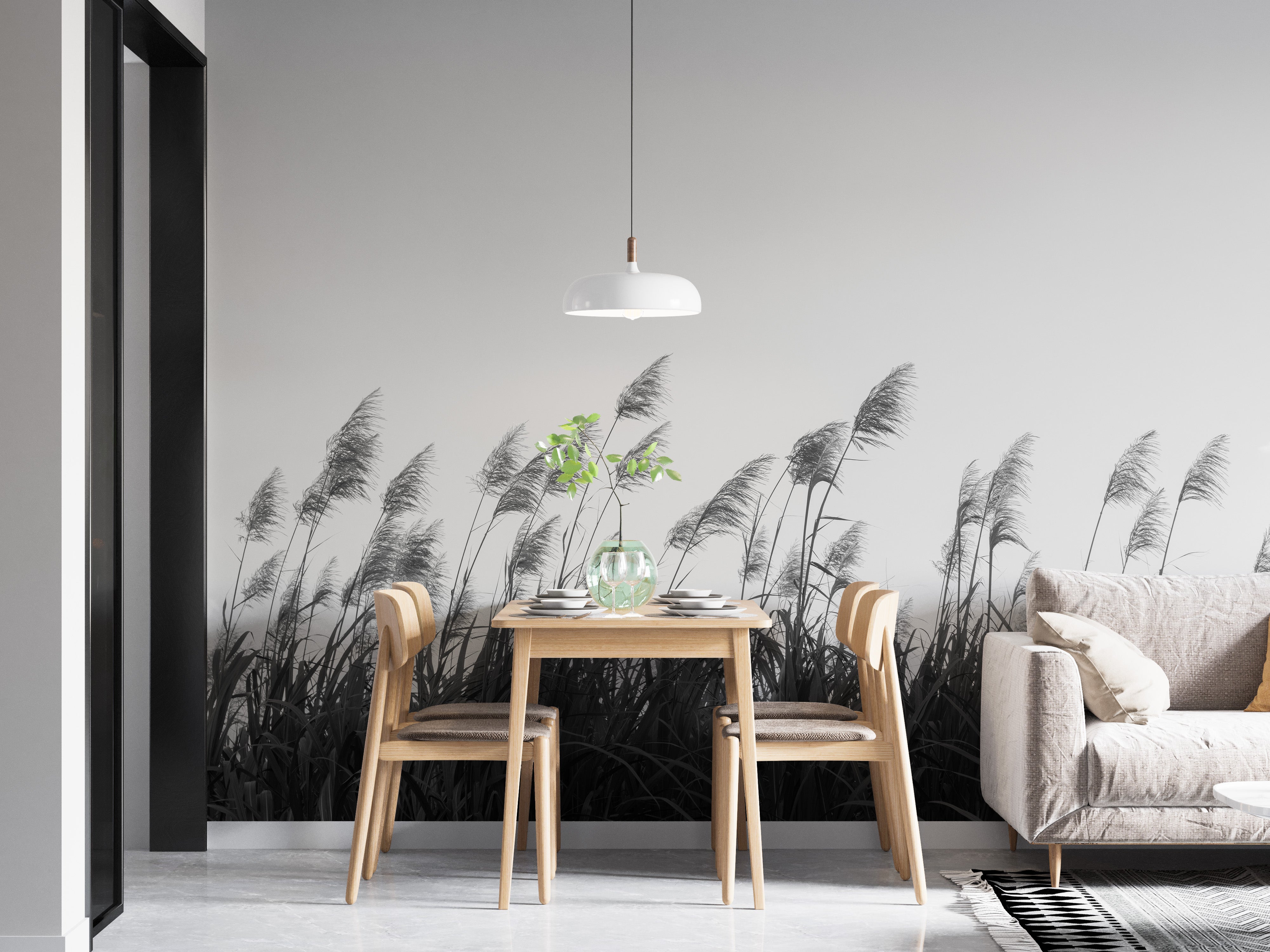 Envelop your living space with the sophisticated contrast of this black and white colour sugar cane mural wallpaper. This exquisite piece showcases the elegant dance of sugar cane blades against a serene sky captured in monochromatic splendour. Ideal for a living room, this black and white wallpaper acts as a captivating backdrop that complements both contemporary and classic decors. The delicate sway of the canes feathery tops brings a sense of gentle motion, creating a visually soothing effect that enhances the room's atmosphere. This wallpaper is not just a decorative element but a conversation starter, exuding an artistic flair that will draw the eye and invite commentary. Perfect for those who appreciate the nuances of nature's beauty presented in stark, captivating contrasts.