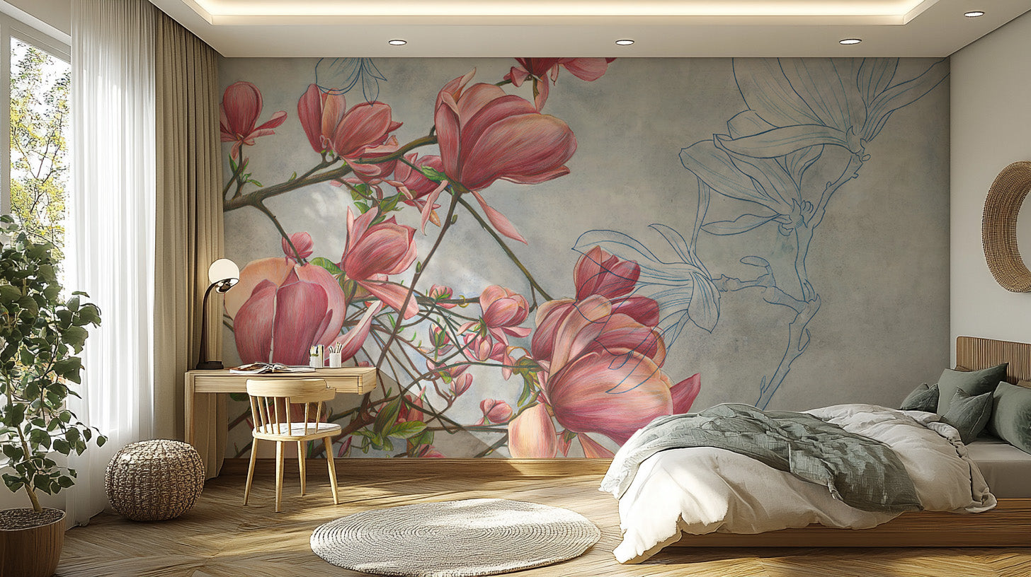 Blossoming magnolia wallpaper perfect for modern wall decor.