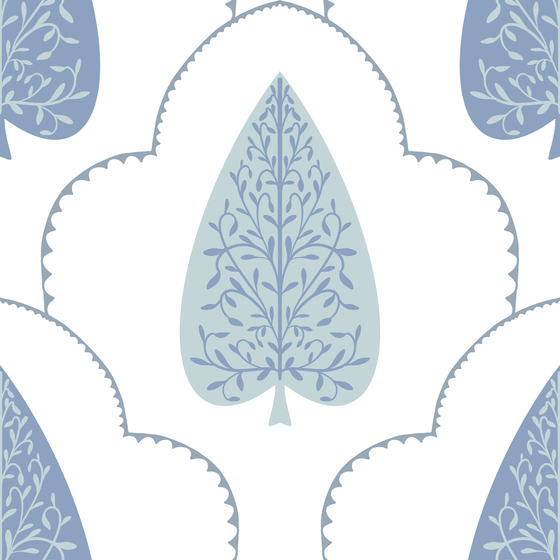 Graceful Blue Botanic Arbor wallpaper, detailed traditional pattern.