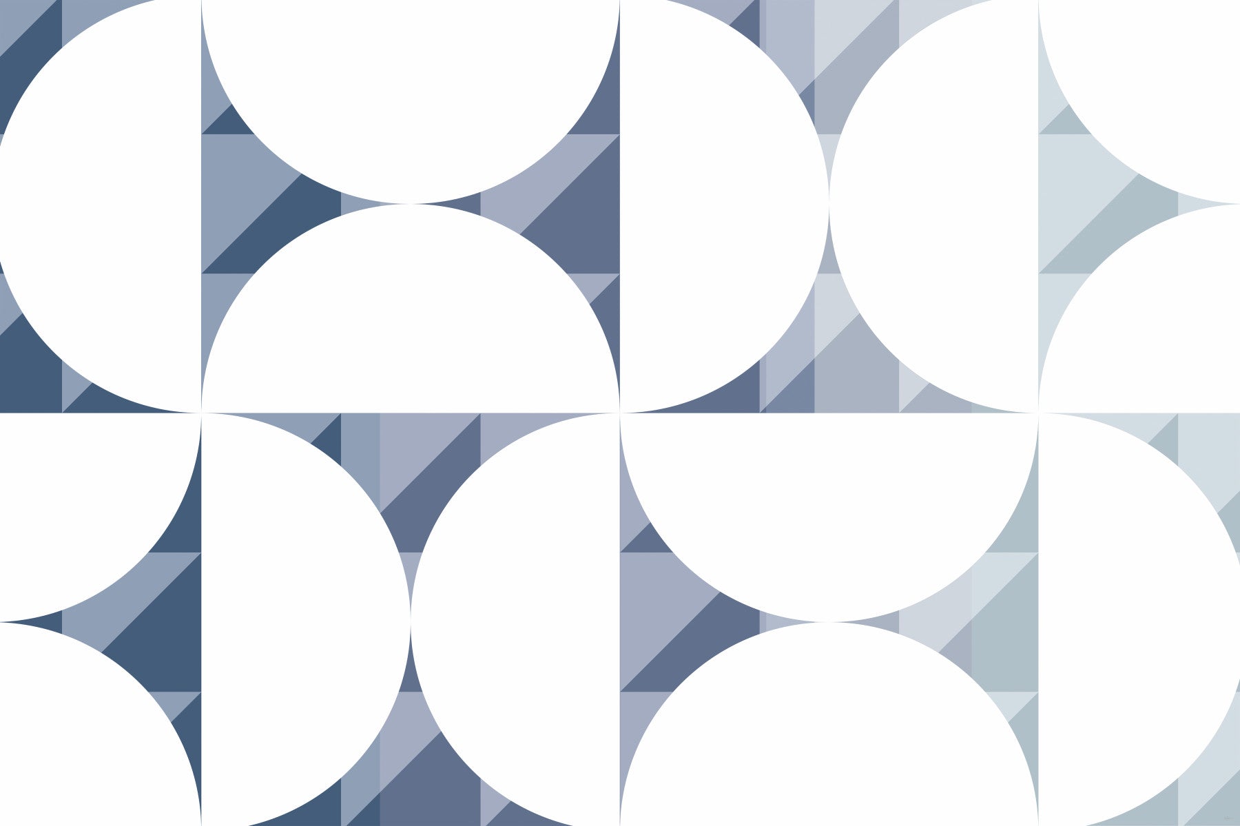 Invite a sense of order and calm with this patterned wallpaper. The design features crisp white semi-circles set against a background of geometric blue forms. This wallpaper brings a structured yet soothing aesthetic to spaces. Consider it for your office to promote focus or in a dining area for an elegant touch. Use this wallpaper for walls to improve the look of any room.