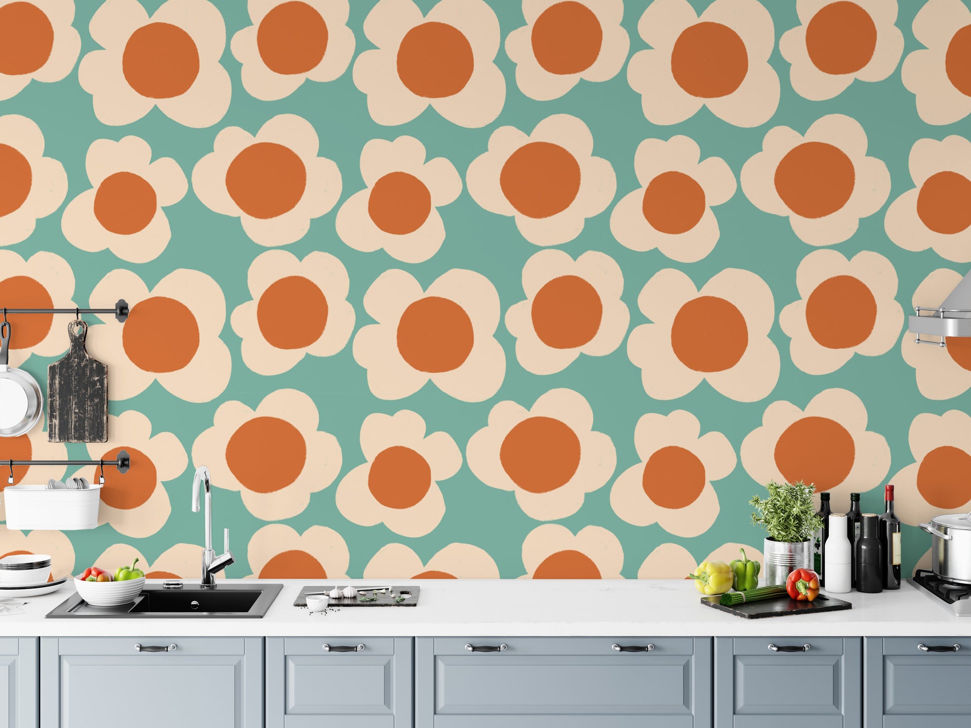 Add some color to any room with our blue sunflower pattern wallpaper. Which makes your house look a little nicer. Our bright floral wallpaper features detailed sunflower designs on a deep blue background, perfect for a striking accent wall in any room. Update your living room, bedroom, or office in style with this flower wall decor, featuring a fresh, modern feel. We are made from premium materials and are easy to install and maintain. Our wallpaper offers durability and style. Upgrade your interior design with this blue sunflower wallpaper for a sophisticated and bold look.
