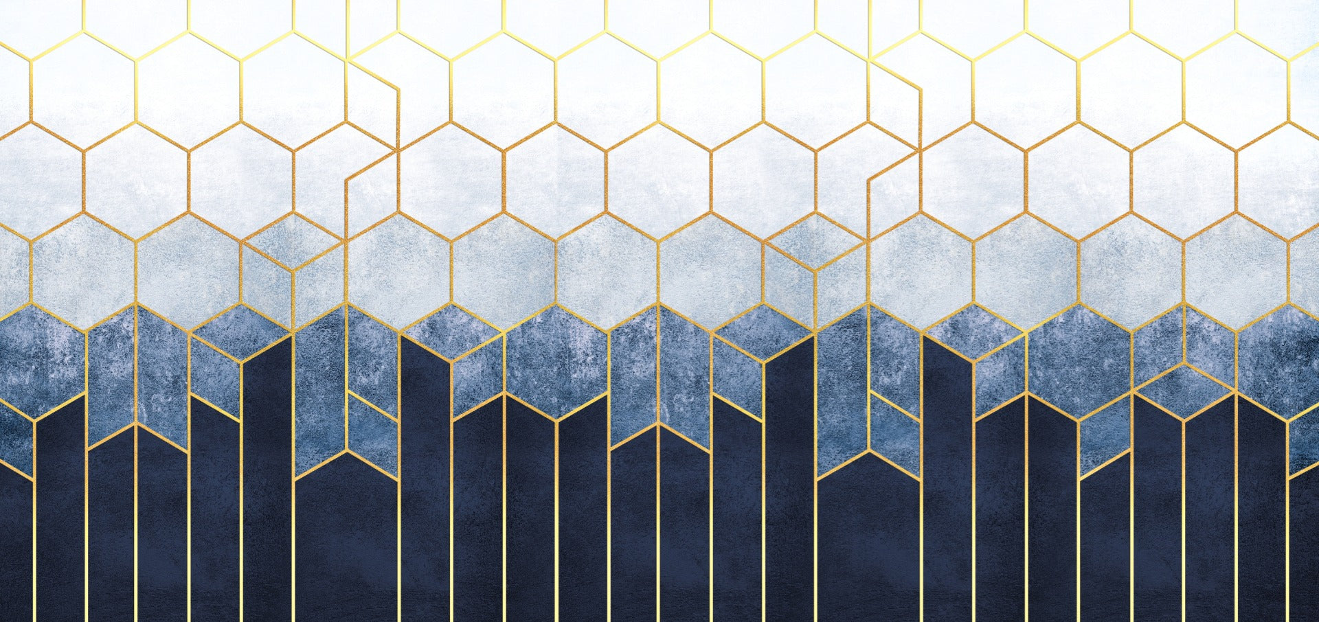 Blue & Gold Hexagonal Pattern Geometric wallpaper Murals - Giffywalls