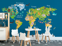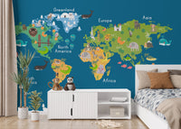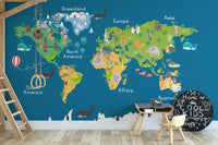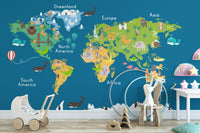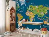 Kids World Map Blue Wallpaper Mural