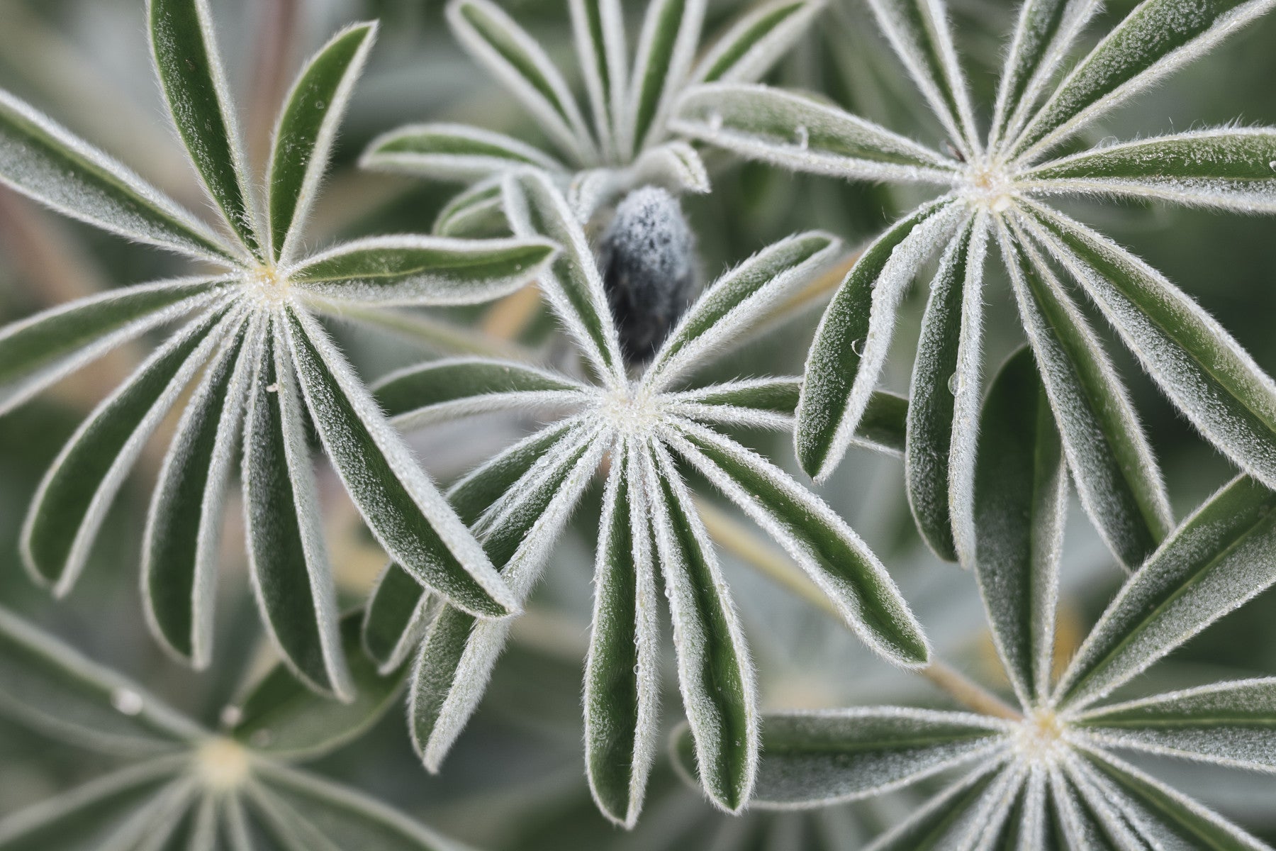 Embrace the serene beauty of nature with Frosted Flora a wallpaper that captures the delicate charm of lupine leaves touched by frost. The image showcases a collection of star-shaped leaves, each vein and edge meticulously outlined with icy crystals, creating a mesmerizing dance of light and shadow. The subtle green hues of the leaves peek through the frosty overlay, adding depth and texture to the design. This wallpaper is perfect for creating a calming and refreshing atmosphere in any space. Let the intricate details and subtle colors of "Frosted Flora" transform your screen into a tranquil botanical escape, bringing a touch of winter's magic to your everyday life. Enjoy the crisp, clean aesthetic that complements any style.