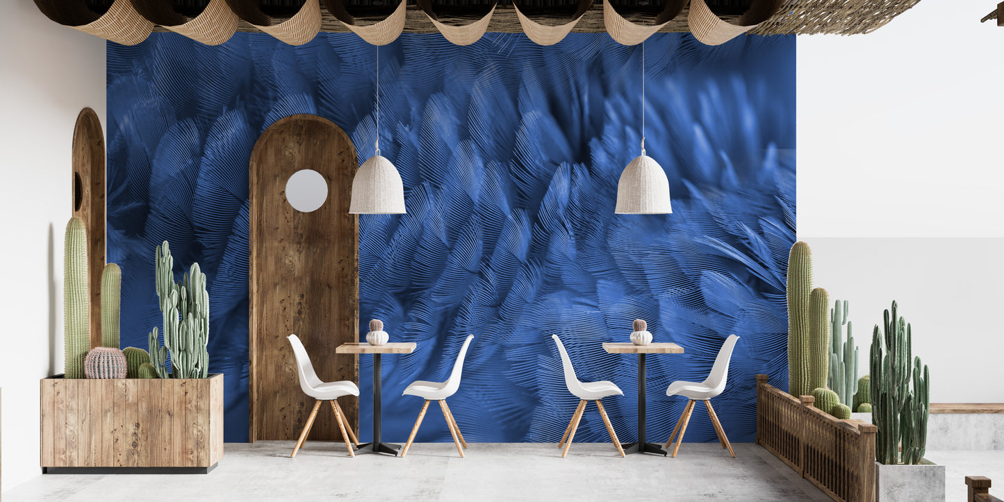 Favored for its stunning visual appeal and the lively atmosphere it creates, this blue feather wallpaper mural is embraced by those seeking to infuse their spaces with the vibrancy of tropical wildlife. Easy to install, it offers decorators, homeowners, and property managers a transformative decor solution that captivates and inspires, making any room stand out.