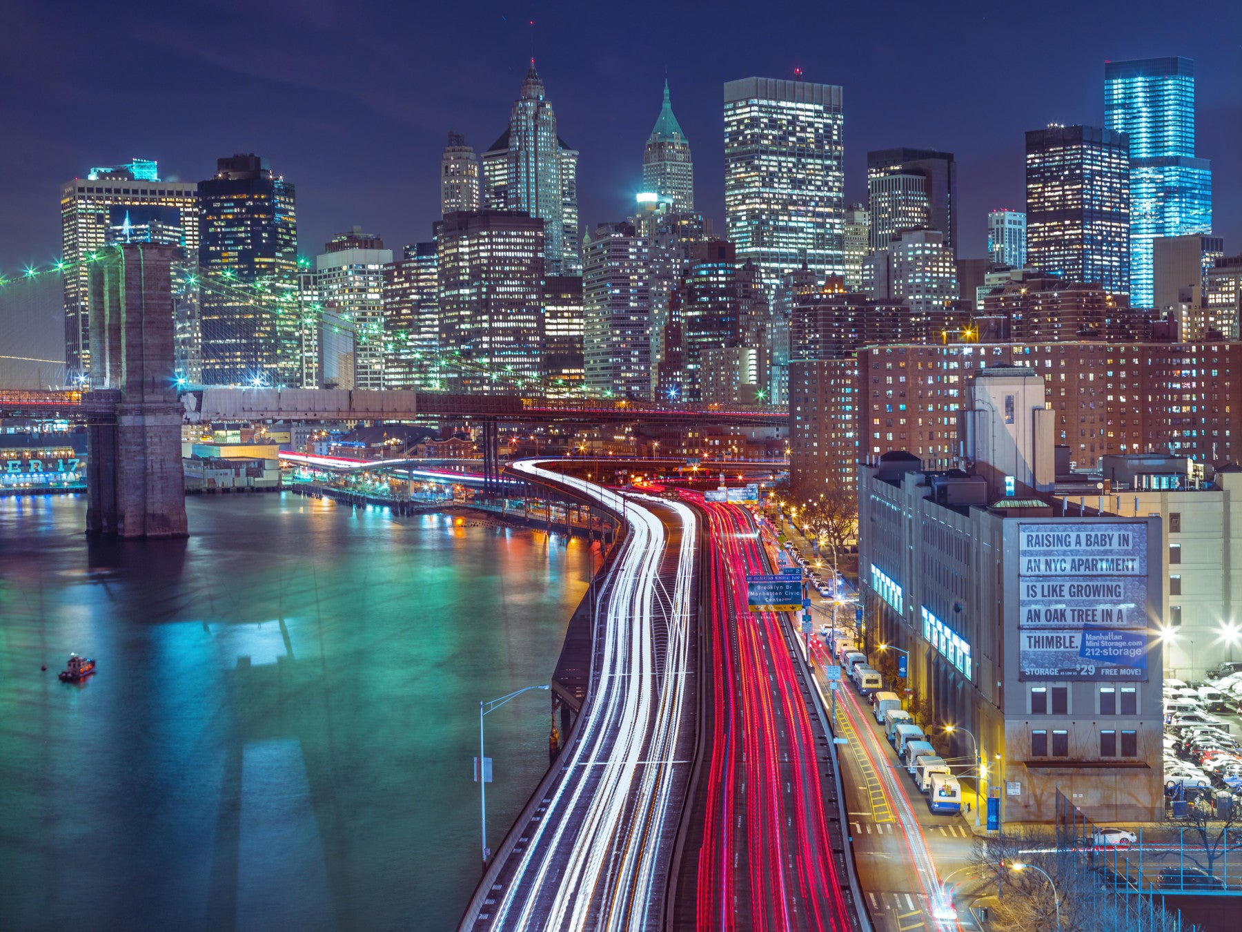 Adorn your home with the vibrant energy of our Blue Manhattan Wall Mural. This captivating mural wallpaper showcases a stunning nighttime view of the Manhattan skyline, dominated by cool blue tones in the sky and reflected across the cityscape and waterways. Streaks of light from moving traffic create dynamic lines across a bridge leading into the illuminated metropolis. It's an ideal wallpaper for walls to introduce unique character and a profound sense of urban dynamism and nighttime allure to any room. Its cool color palette and vibrant light trails offer a compelling backdrop, ensuring your home feels both modern and beautifully connected to the iconic pulse of New York City after dark.