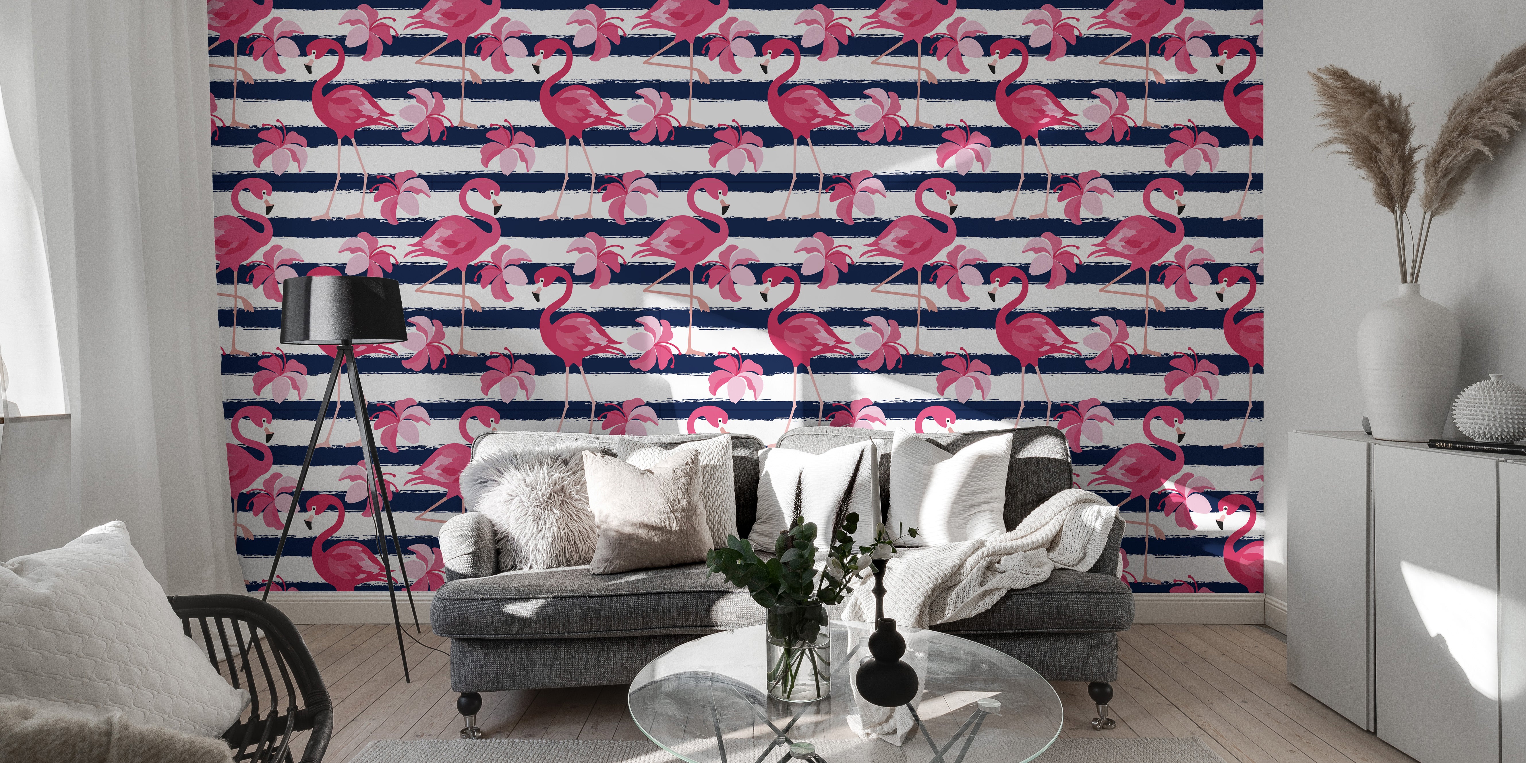 Make a bold and playful statement with our blue stripes and pink flamingo wallpaper. This unique design pairs crisp blue stripes with whimsical pink flamingos, creating a fun and vibrant look that’s perfect for adding personality to any room. Whether you’re decorating a child’s bedroom, a bathroom, or a quirky living space, this tropical vibes wallpaper is guaranteed to bring smiles and a splash of color. The striking contrast and fun imagery make it a perfect choice for anyone looking to inject a bit of joy and whimsy into their decor. Transform your space into a tropical paradise where every day feels like a vacation.