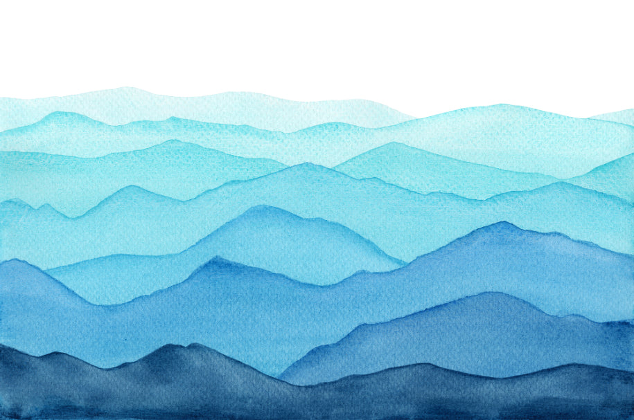 Blue Watercolor Waves Mountains Wallpaper Murals - Giffywalls