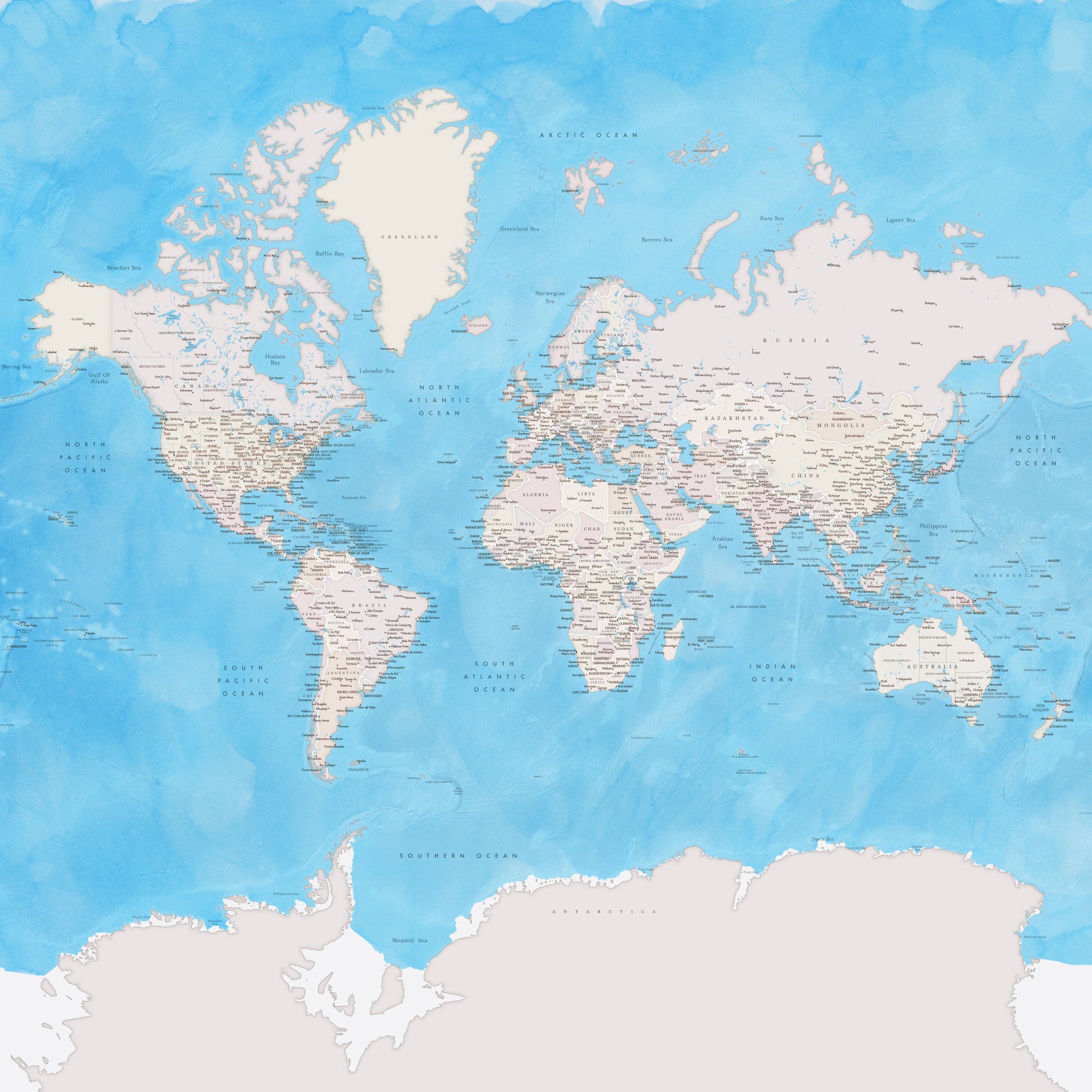 Refresh your room with the Blue Watercolor World Map Wallpaper, where calm skies meet detailed geography. The oceans shine in gentle watercolor blues, highlighting soft-toned continents and clearly marked countries. Perfect for kids’ study areas, travel-themed corners, or creative workspaces, this mural blends educational value with artistic flair. It brings a breezy, open feel to the room while offering a daily dose of inspiration. The clear map layout supports learning, and the soothing palette fits seamlessly into both modern and playful interiors. A great way to make geography part of your everyday wall design simple, fresh, and full of possibility.