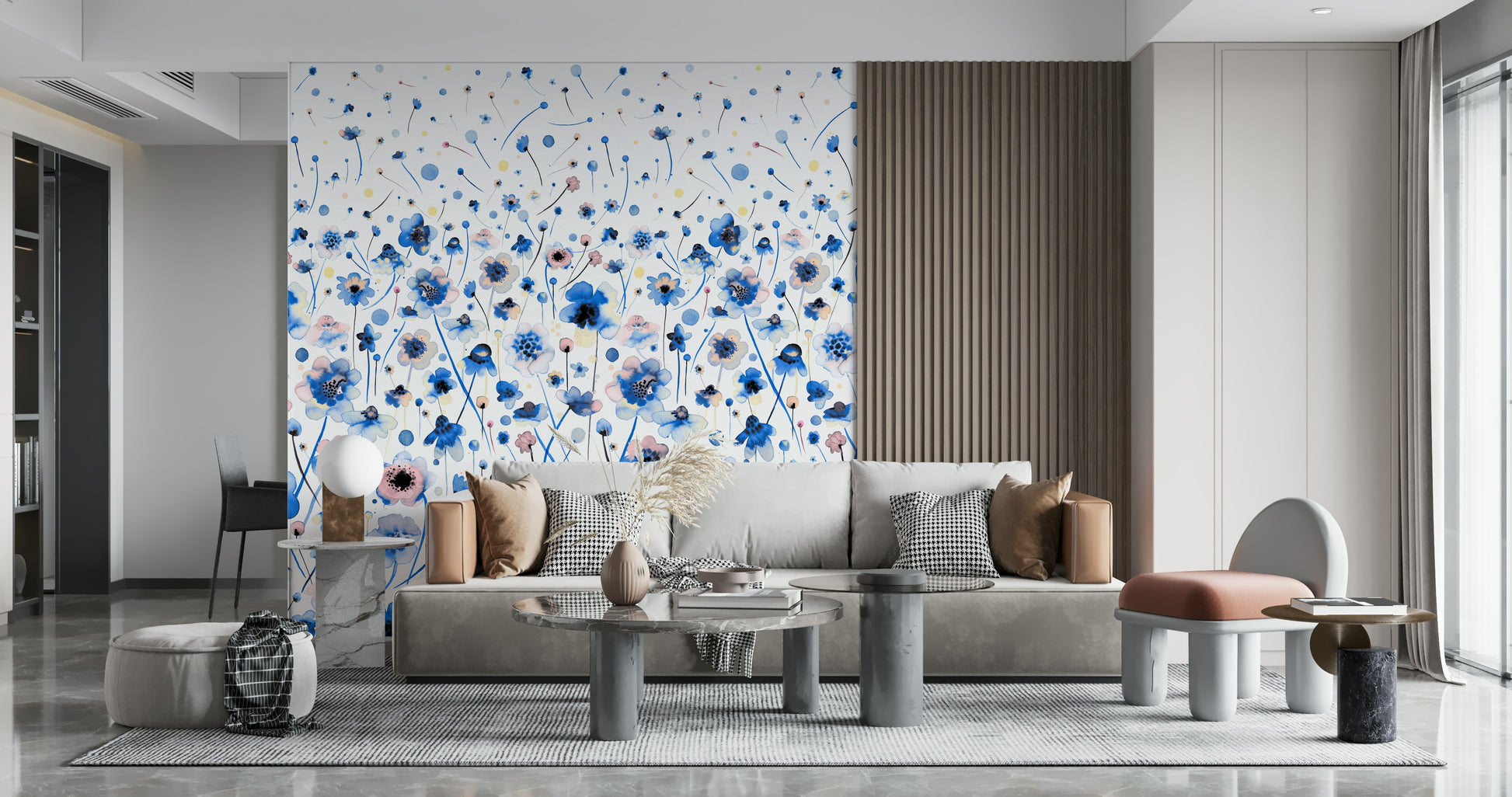 Immerse your space in the delicate allure of 'Bluebell Blush'. This enchanting design transforms walls into a blossoming meadow of watercolour dreams. Capturing the essence of a serene spring morning, it features a medley of bluebell-inspired blooms gracefully intertwined with subtle blushes of pink. The soft, watercolour style lends an ethereal quality, creating a calming and sophisticated atmosphere. Perfect for adding a touch of whimsical elegance to any room, the artistic detailing and gentle colour palette bring a sense of natural beauty indoors. 'Bluebell Blush' offers an effortless way to elevate your interior, infusing your walls with the timeless charm of a blooming garden. Let this captivating floral design breathe life and tranquillity into your home.