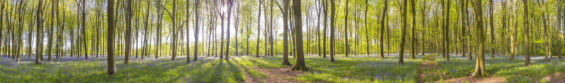 Wall mural Bluebell Woods panoramic vibrant spring landscape
