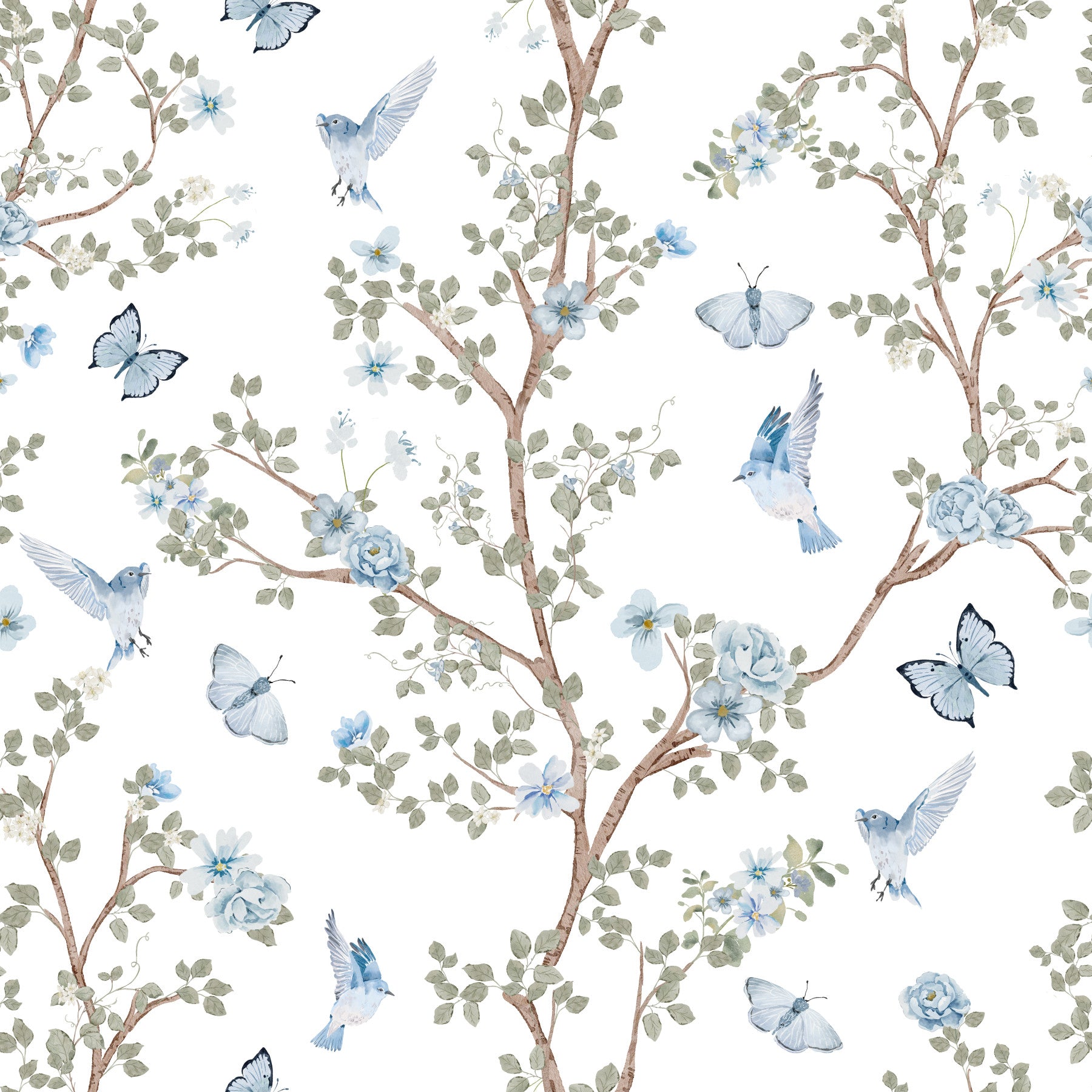 Bluebird Chinoiserie Garden Serenade Wallpaper⁠