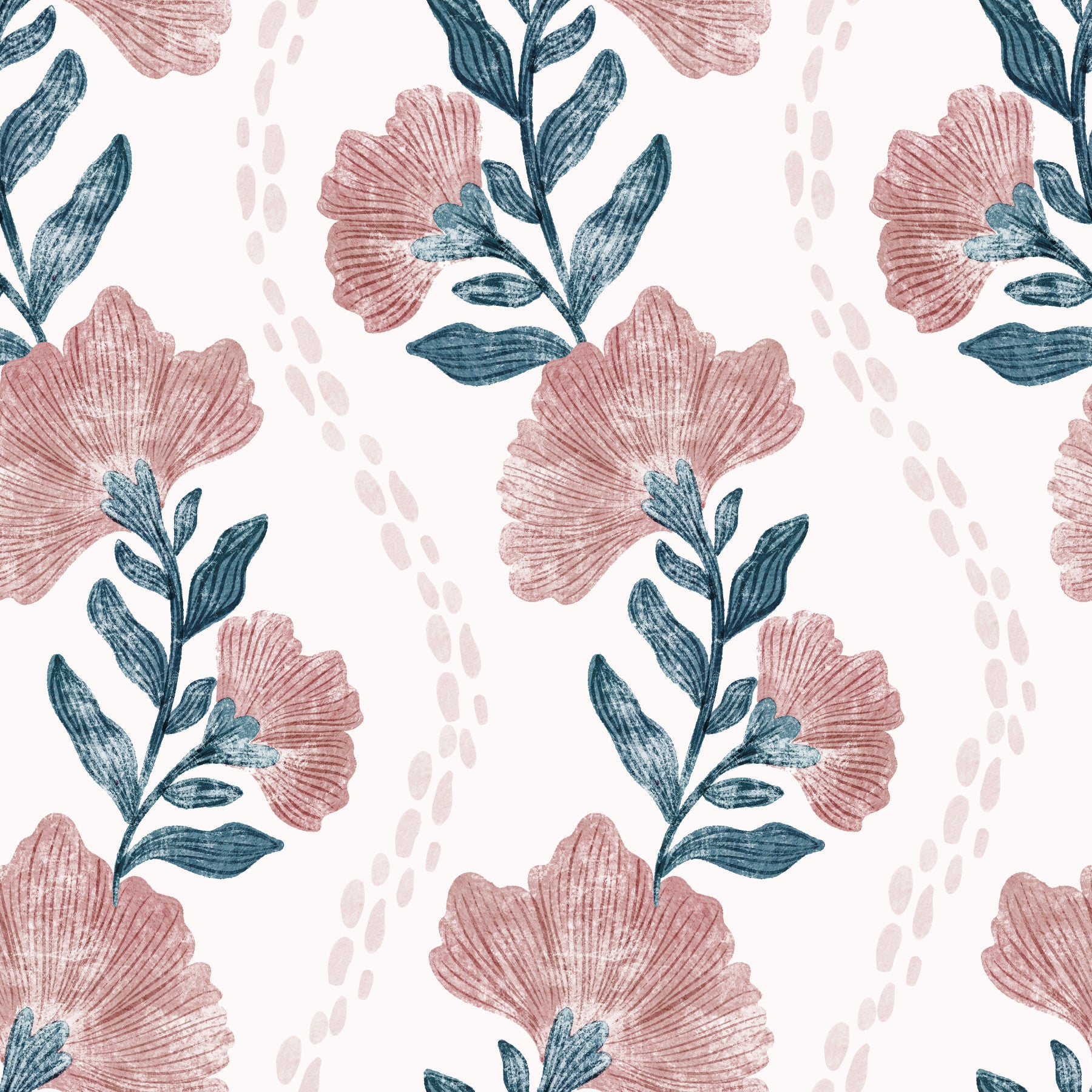 The image shows a repeating pattern of soft, blush-colored flowers.