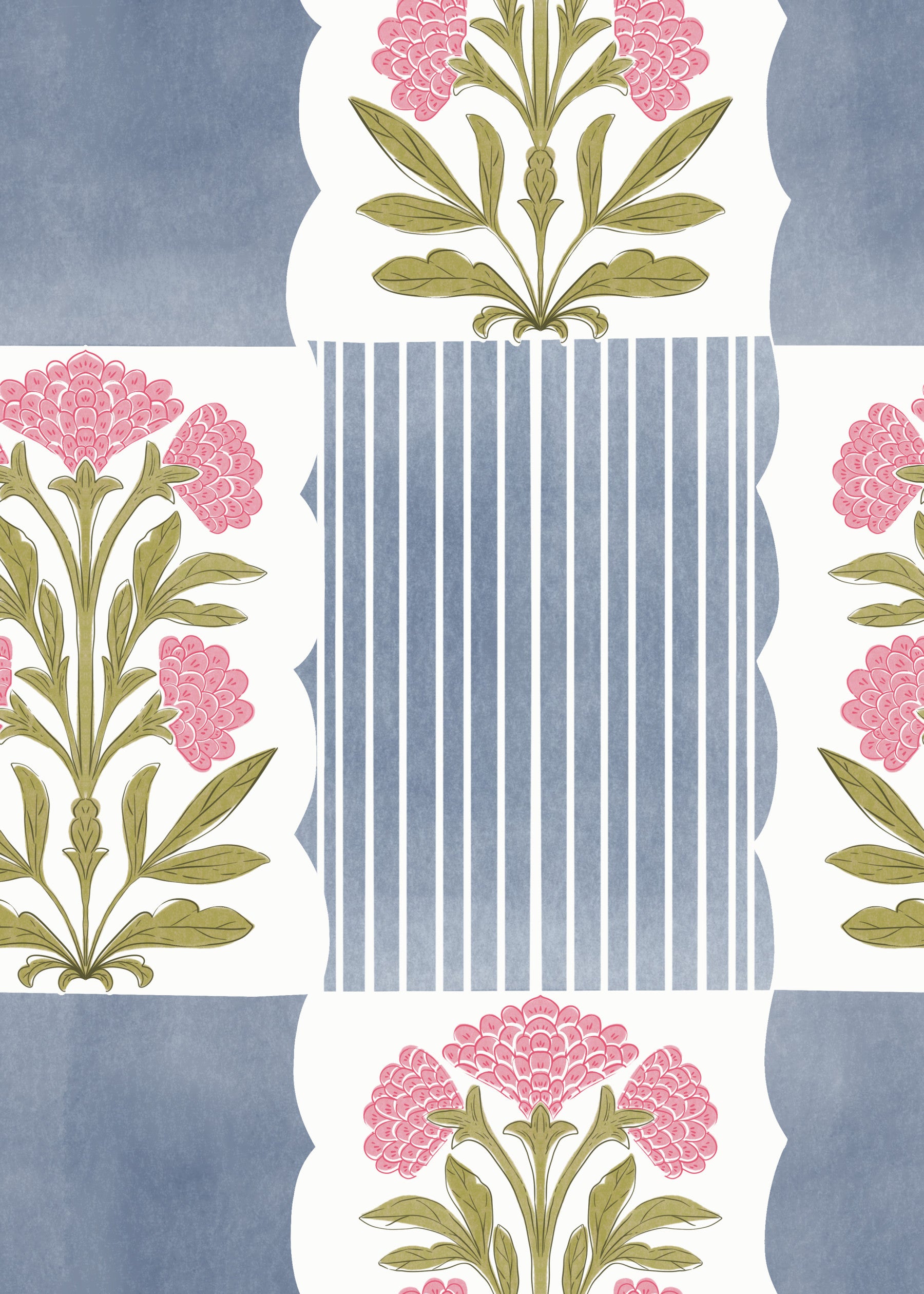 Blush blue mural with vertical stripe pattern