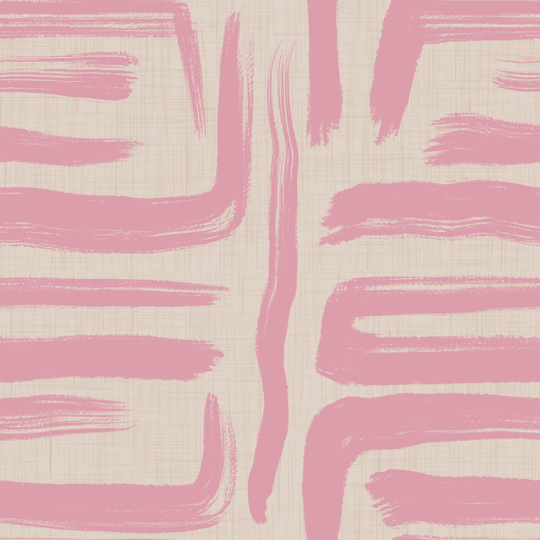 Embrace mid-century modern elegance with this stunning wallpaper. Bold, blush-pink brushstrokes are layered against a subtle beige linen texture, creating a captivating interplay of color and form. The abstract design evokes a sense of calm sophistication, perfectly blending organic brushwork with geometric undertones. This wallpaper adds a touch of retro charm to any space, offering a stylish and versatile backdrop for your home or office. The soft pink and neutral beige palette creates a serene atmosphere, ideal for those seeking a peaceful and aesthetically pleasing environment. Experience the effortless style of this unique abstract design.