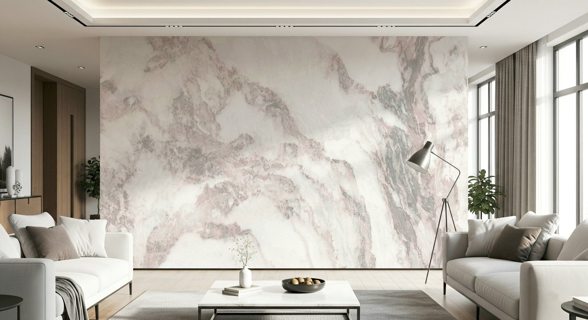 Transform your space with refined beauty. This wallpaper for walls showcases a delicate marble effect in soft blush tones, creating an atmosphere of quiet luxury. It features elegant swirls and subtle variations in colour, perfect for bringing a sophisticated look to living rooms, bedrooms, or hallways. This design complements interiors with its gentle colour palette and timeless aesthetic, adding a touch of class to any home.