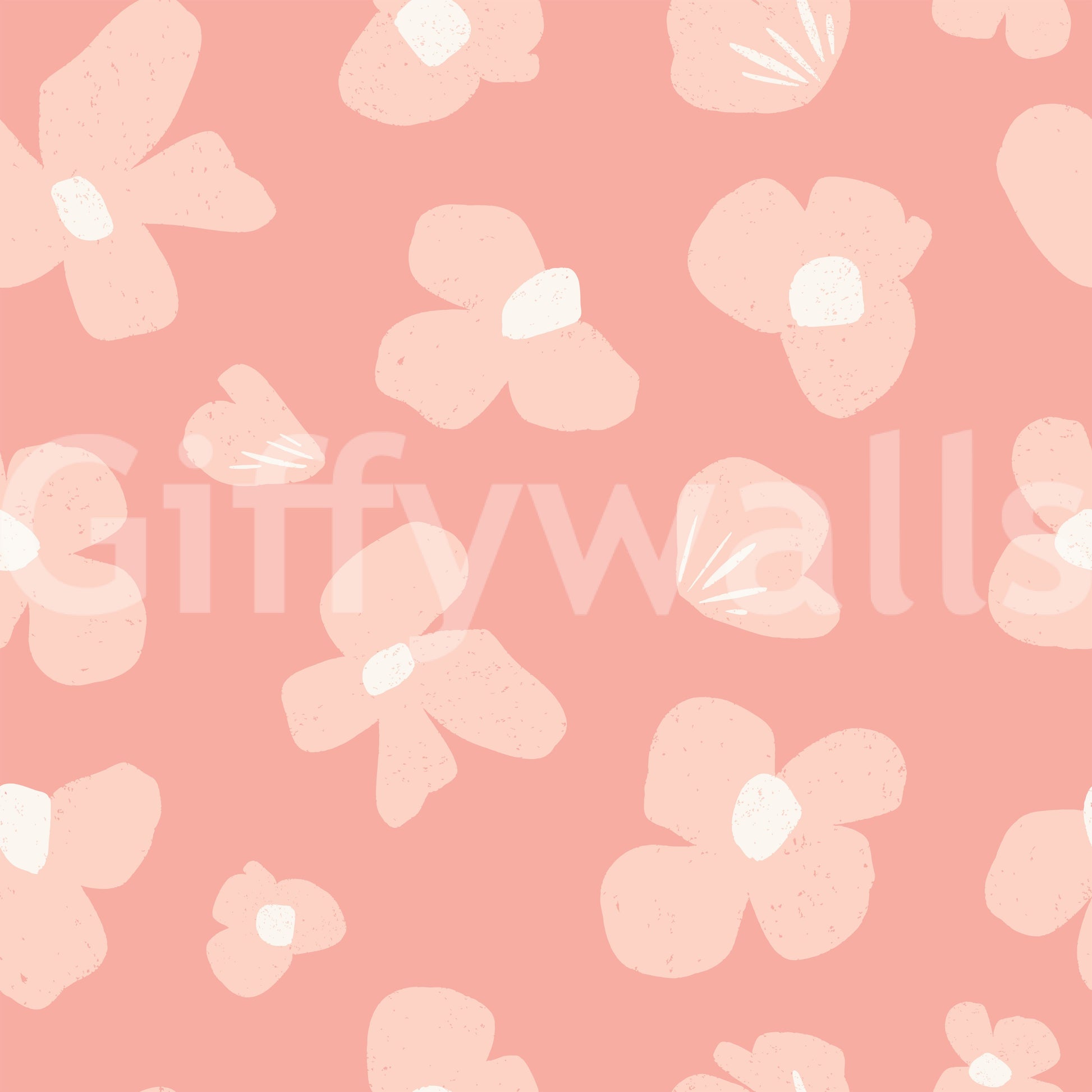 This wallpaper features a delicate and charming design of blush pink flowers scattered across a soft coral background. The hand-drawn style of the flowers gives a unique, artistic touch, adding a whimsical feel to the overall aesthetic. The muted color palette creates a soothing and calming atmosphere, perfect for bedrooms, living rooms, or any space needing a touch of serene beauty. The subtle texture adds visual interest without being overwhelming, making it a versatile choice for various interior styles. The repeating pattern ensures a harmonious and cohesive look across any wall.