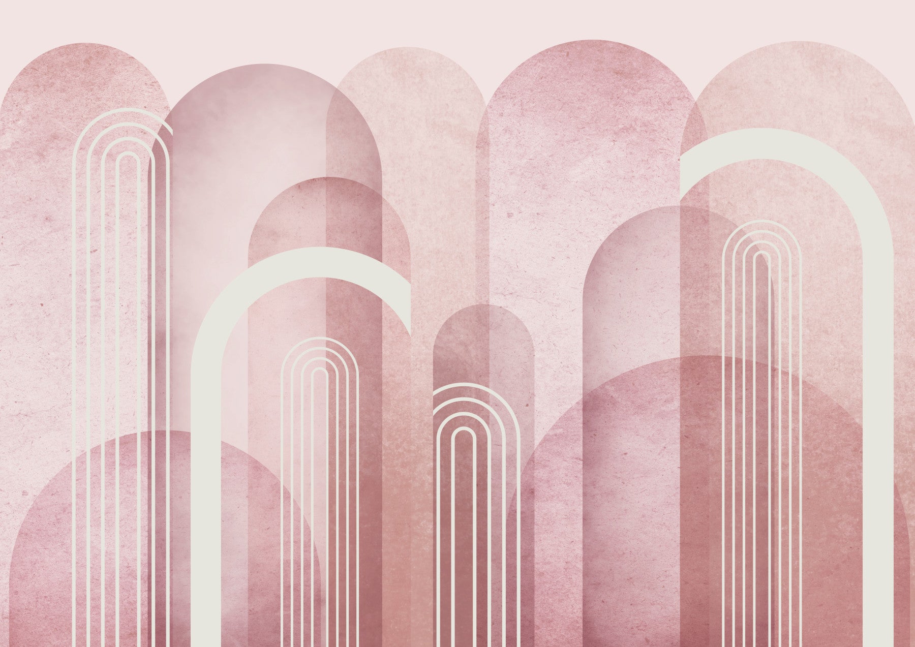 Invite a sense of calm with this geometric wallpaper. The design showcases overlapping arches and linear details in soft pink and cream hues. It's perfect wallpaper for walls in a bedroom, living room, or entryway. The subtle texture and minimalist style offer a sophisticated touch to various interiors. Use it to add depth without overwhelming your decor. This design creates a serene and stylish atmosphere.