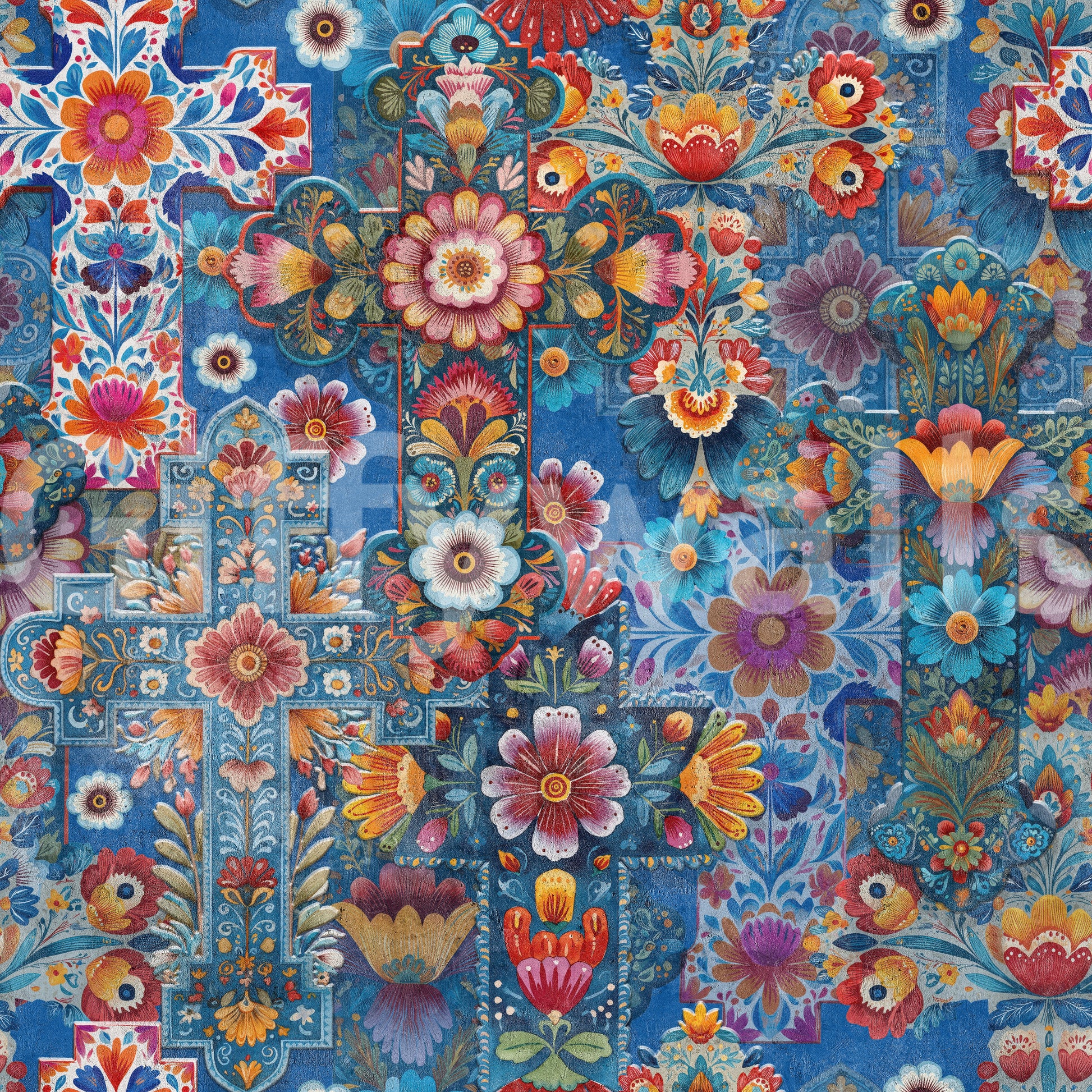 Embrace a vibrant, free-spirited vibe with this bohemian-inspired floral wallpaper. The design features a mix of bold blooms in a rich colour palette that includes blues, oranges and pinks. This is a perfect wallpaper for walls in spaces that need energy. Ideal for a bedroom or living area, this wall covering provides a cheerful backdrop. Its intricate details and colour blend complements bohemian, eclectic and even modern interiors, adding warmth and visual interest.