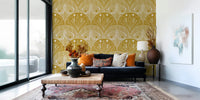 Boho Art Nouveau Scallop Butterfly Floral in Mustard Gold Wallpaper⁠