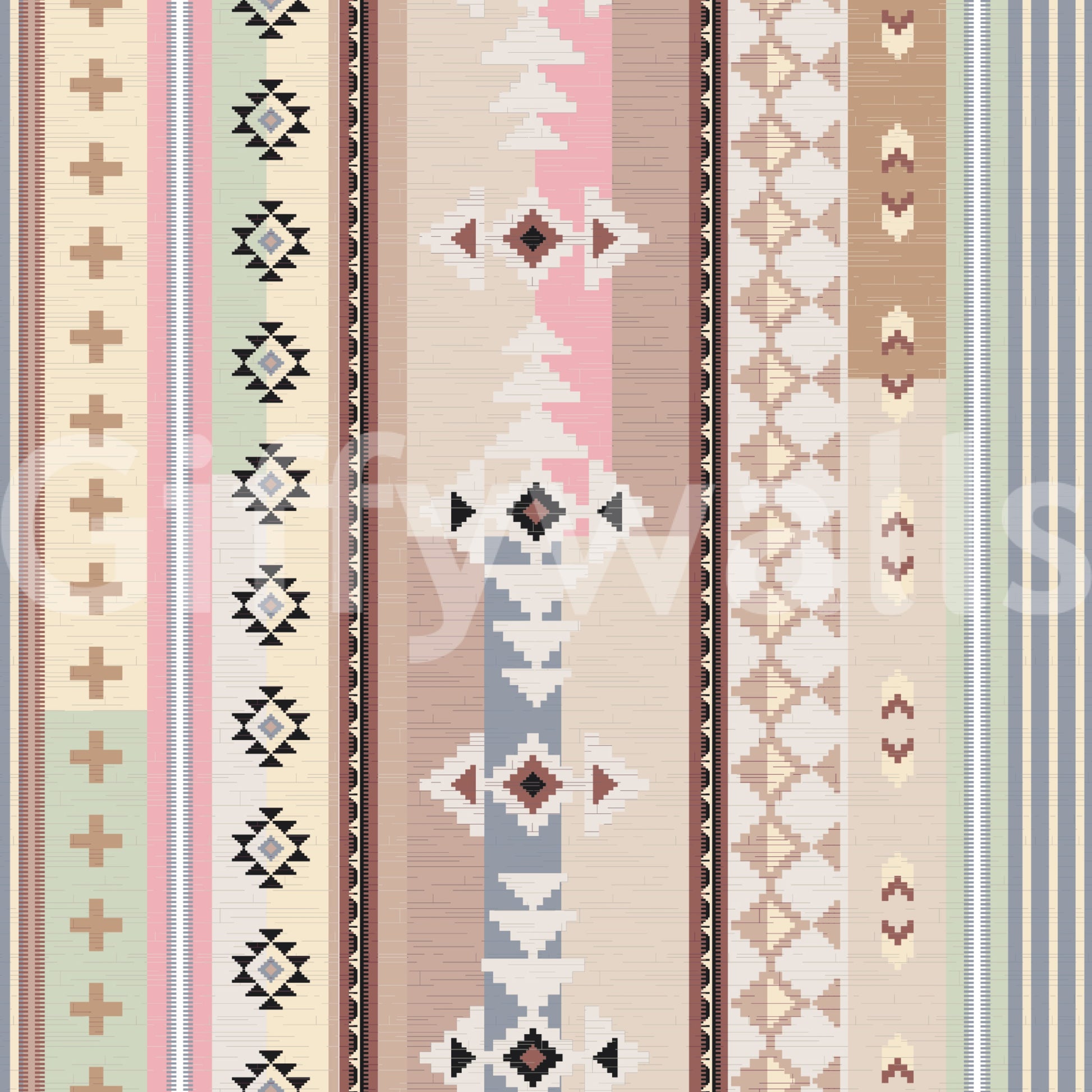 Inspired by woven textiles and desert landscapes, this pattern combines stripes and tribal-inspired motifs in soothing pastel and earthy shades. A perfect blend of modern boho charm and cosy sophistication.
