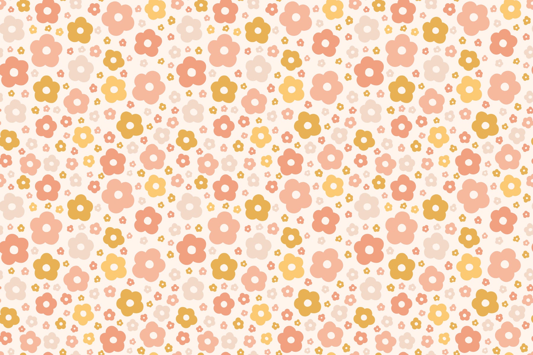 Embrace the free-spirited charm of Boho Daisies, a delightful wallpaper featuring a whimsical scattering of stylized daisies. Soft, earthy tones of blush pink, creamy beige, and golden mustard yellow create a calming and cheerful atmosphere. The simple yet elegant flower design is reminiscent of vintage 70s aesthetics, perfectly capturing the boho spirit. This wallpaper is ideal for adding a touch of relaxed elegance to any digital device, bringing a burst of sunshine and effortless style to your screen.