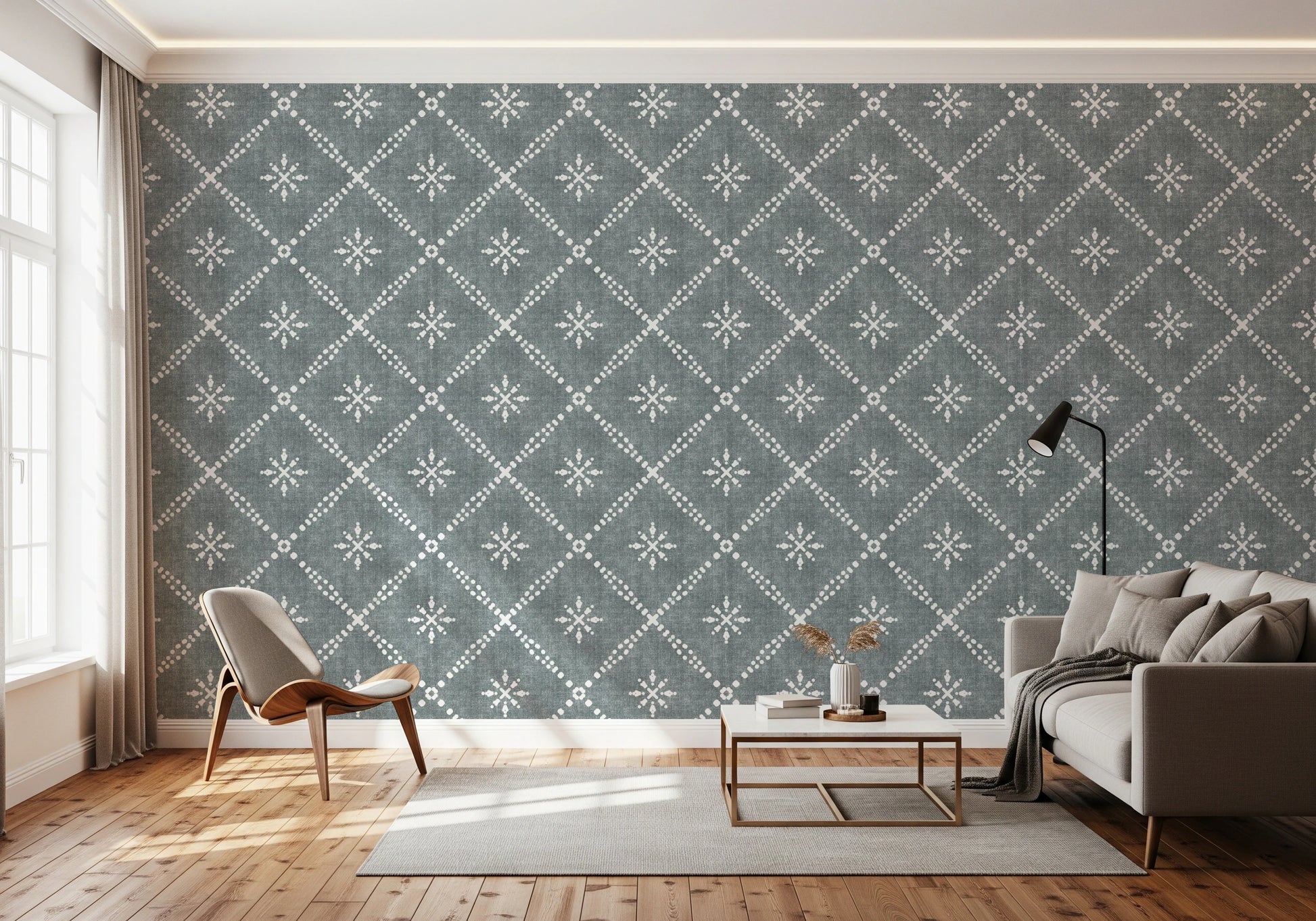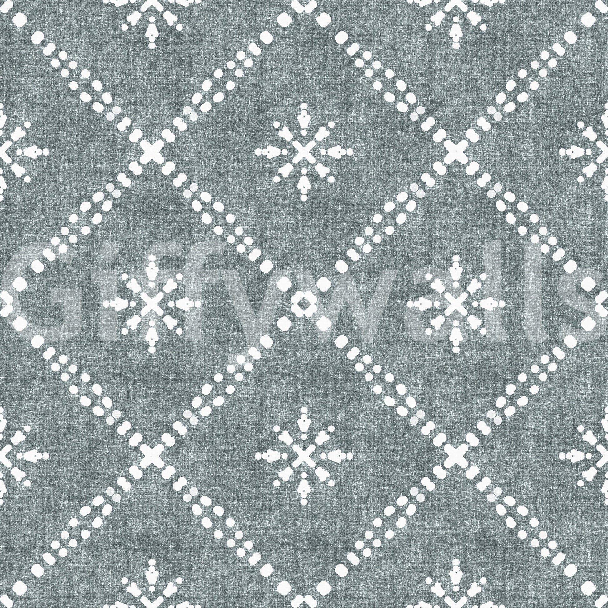 Boho Dotted Lattice Grunge Calming Blue Wallpaper⁠