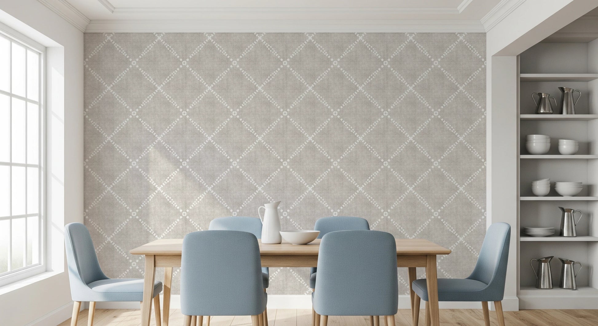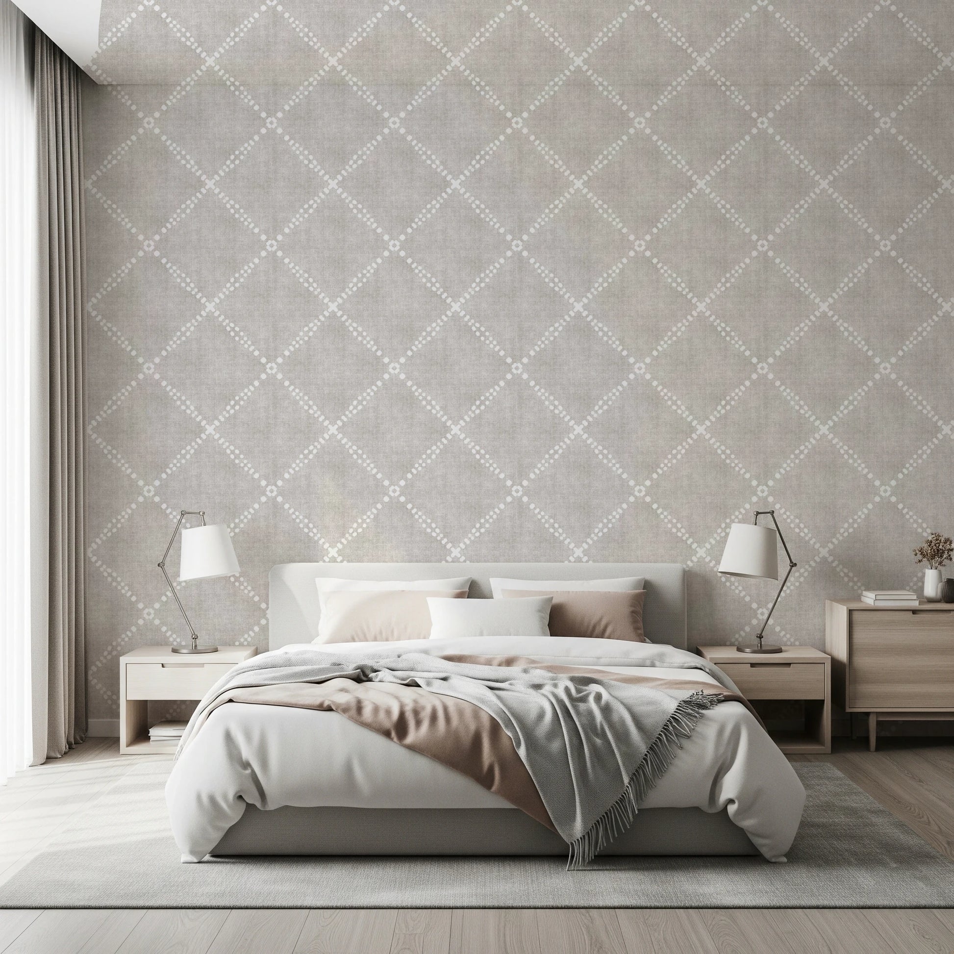 Boho Dotted Trellis Grunge Neutral Wallpaper⁠