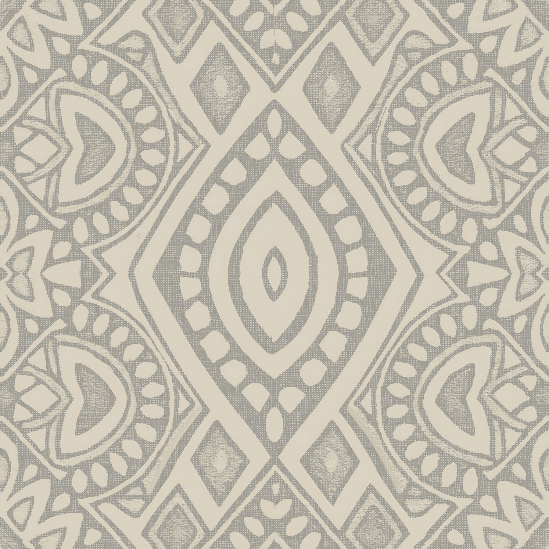 Boho Geometric Mosaic Neutral Grey and Beige Wallpaper⁠