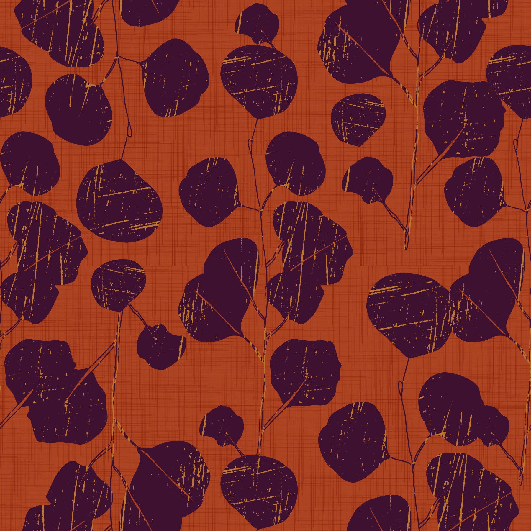 Boho Jewel Tone Botanical Plum Leaves Terracotta Wallpaper⁠