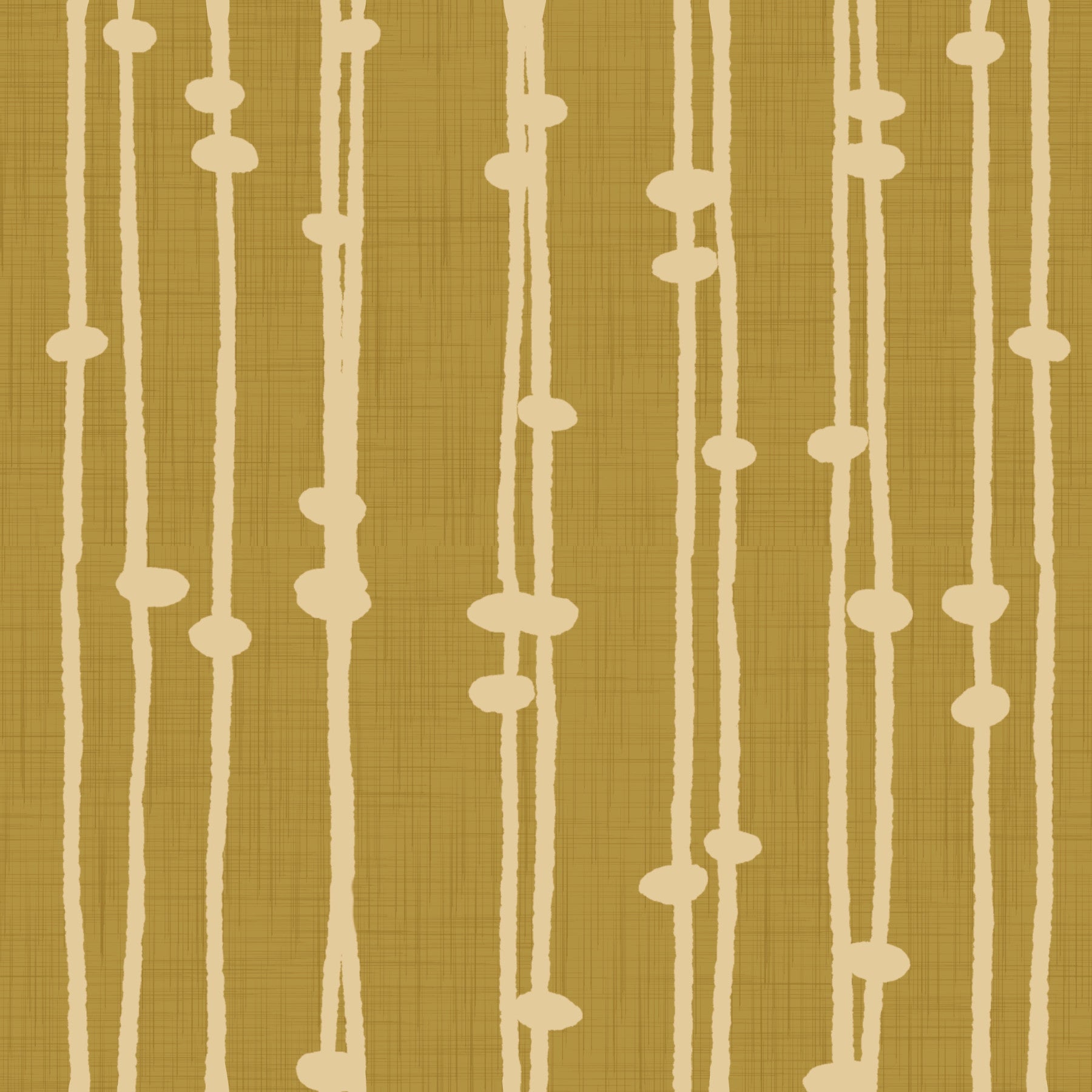 Embrace the warm and inviting vibes of the 'Boho Jewel Tone Stripes Retro Mustard' wallpaper. This design brings a touch of vintage charm to your space with its retro-inspired aesthetic. Vertical stripes in a soft, muted beige cascade down a mustard yellow backdrop, reminiscent of handcrafted textiles. The subtle texture adds depth, while the interspersed organic shapes create a playful yet sophisticated visual rhythm. Perfect for creating a cozy and relaxed atmosphere, this wallpaper adds a unique boho touch to any room. The jewel-toned mustard palette provides a grounding and comforting presence, enhancing your interior with a unique blend of classic and contemporary style.Transform your walls into a canvas of art with this vibrant and stylish wallpaper.