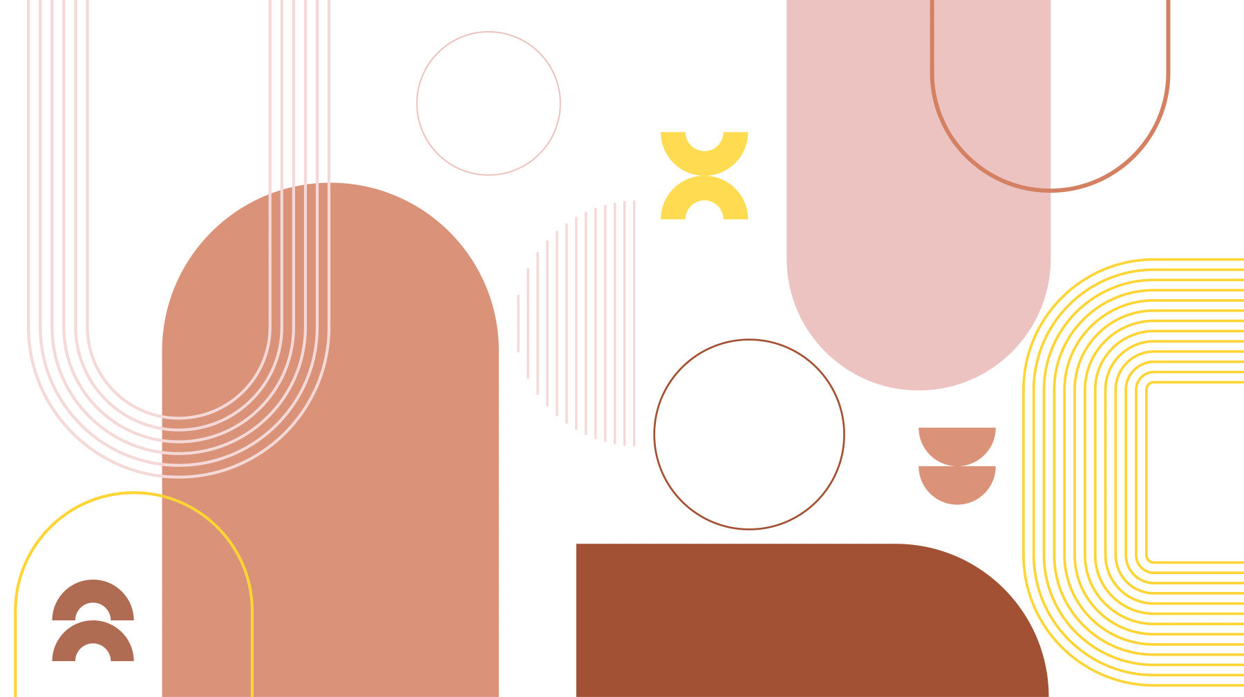 Embrace minimalist sophistication with this "Bold Boho Geometry" wallpaper. Earthy terracotta and blush pink hues blend seamlessly with vibrant gold accents, creating a calming yet striking visual narrative. The design features a captivating interplay of organic shapes – arches, circles, and semi-circles – alongside crisp geometric lines and patterns. This sophisticated arrangement evokes a sense of tranquil modernism, perfect for adding a touch of bohemian elegance to any space. The balanced composition and boho color palette create a serene and stylish atmosphere, making it ideal for both a child's bedroom or playroom.