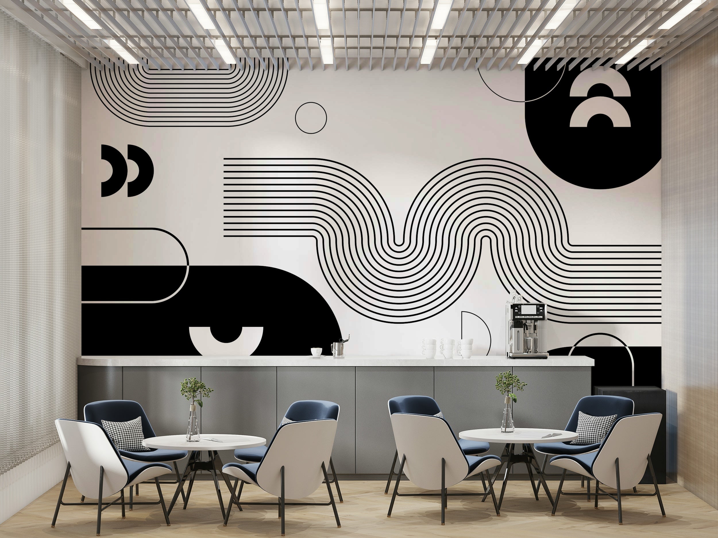 Experience the captivating elegance of "Bold Minimalist Flow." This wallpaper masterfully blends stark black and white forms, creating a dynamic visual narrative. Concentric curves flow across the canvas, juxtaposed with bold, graphic shapes and negative space. The design is simultaneously modern and timeless, offering a sense of movement and calm. Its minimalist aesthetic is punctuated by strong, graphic elements, offering a sophisticated yet striking visual experience ideal for a modern interior. The clean lines and bold contrasts make this wallpaper a truly eye-catching yet calming addition to any space.